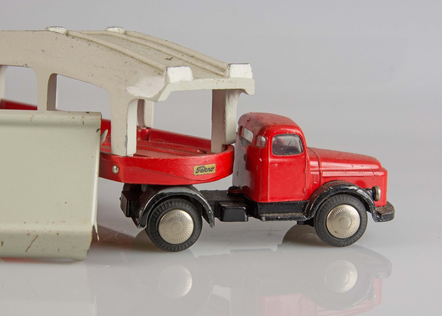 Lastbil i metal med motiv af Volvo Auto Transport med aftagelig opkørselsrampe