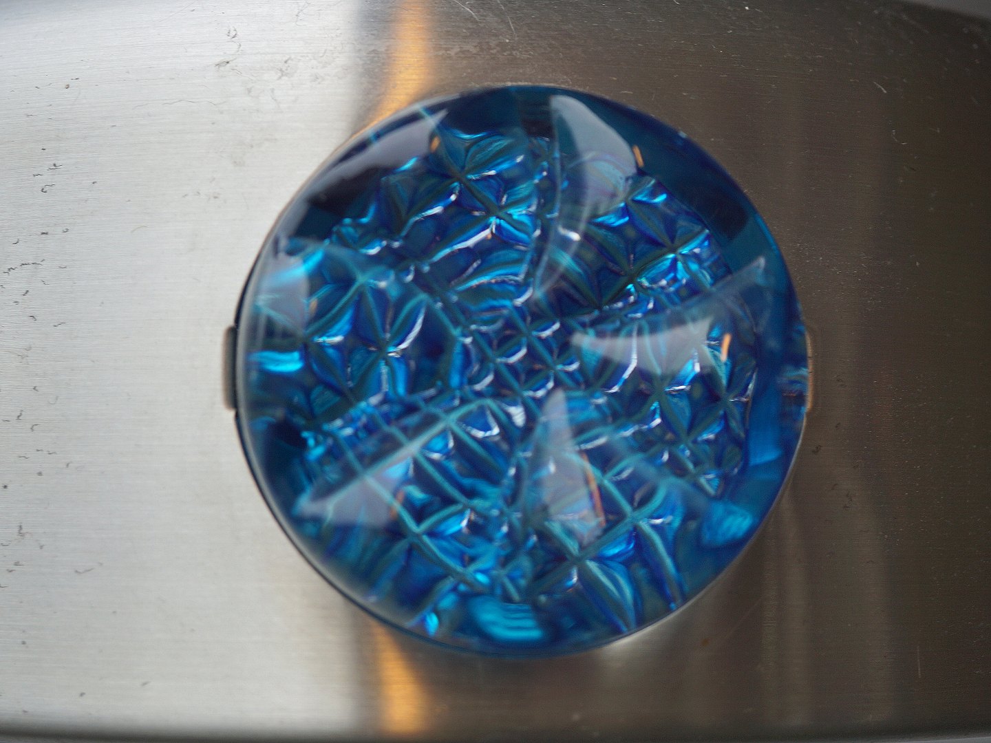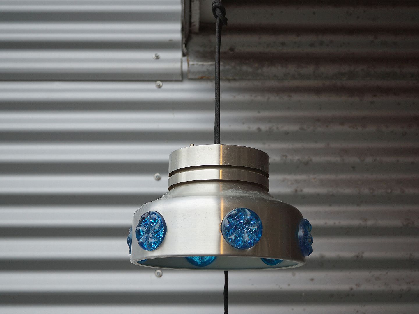 Lampe, pendel, stål, børstet stål, blå, plast, rosetter