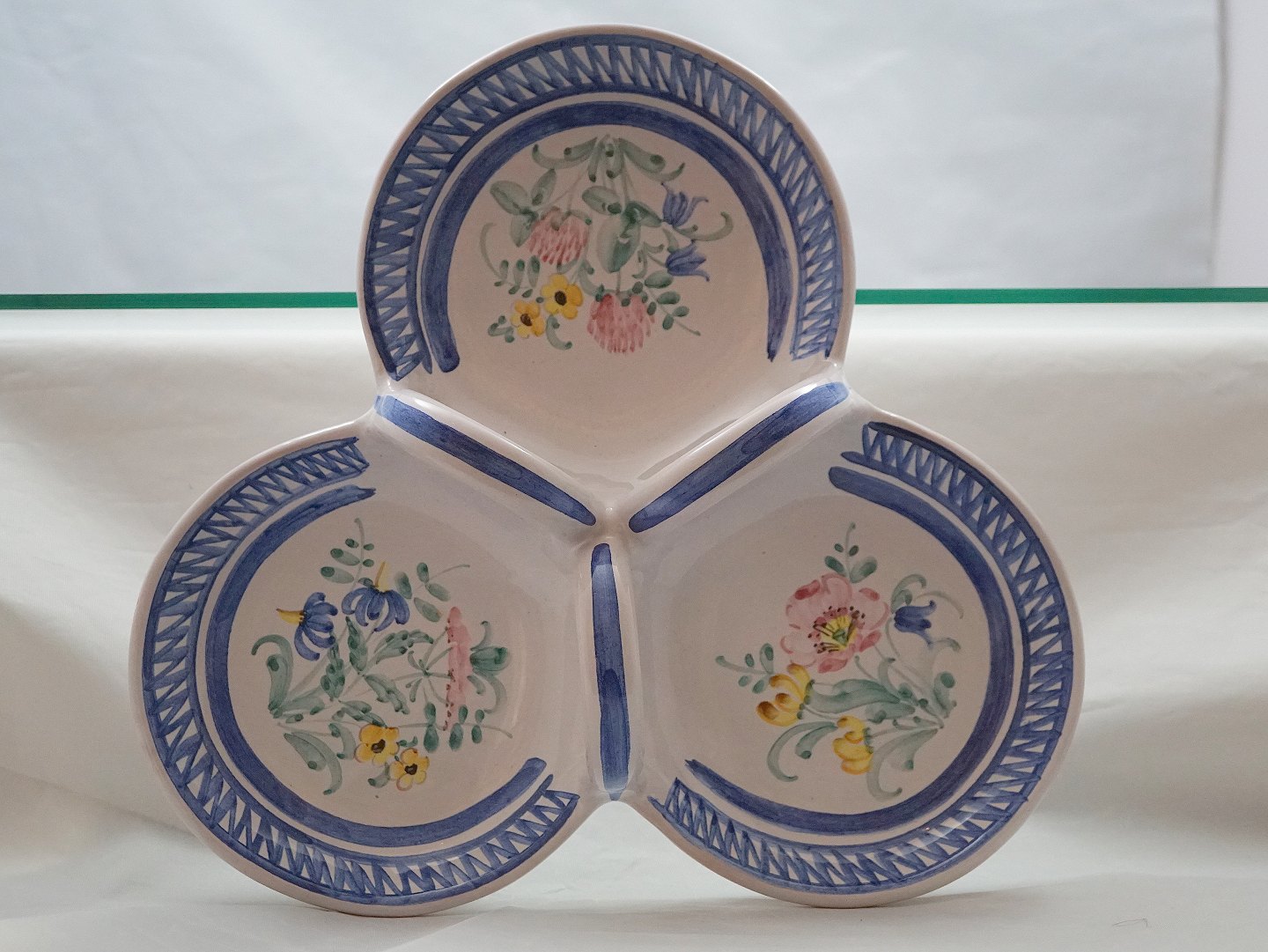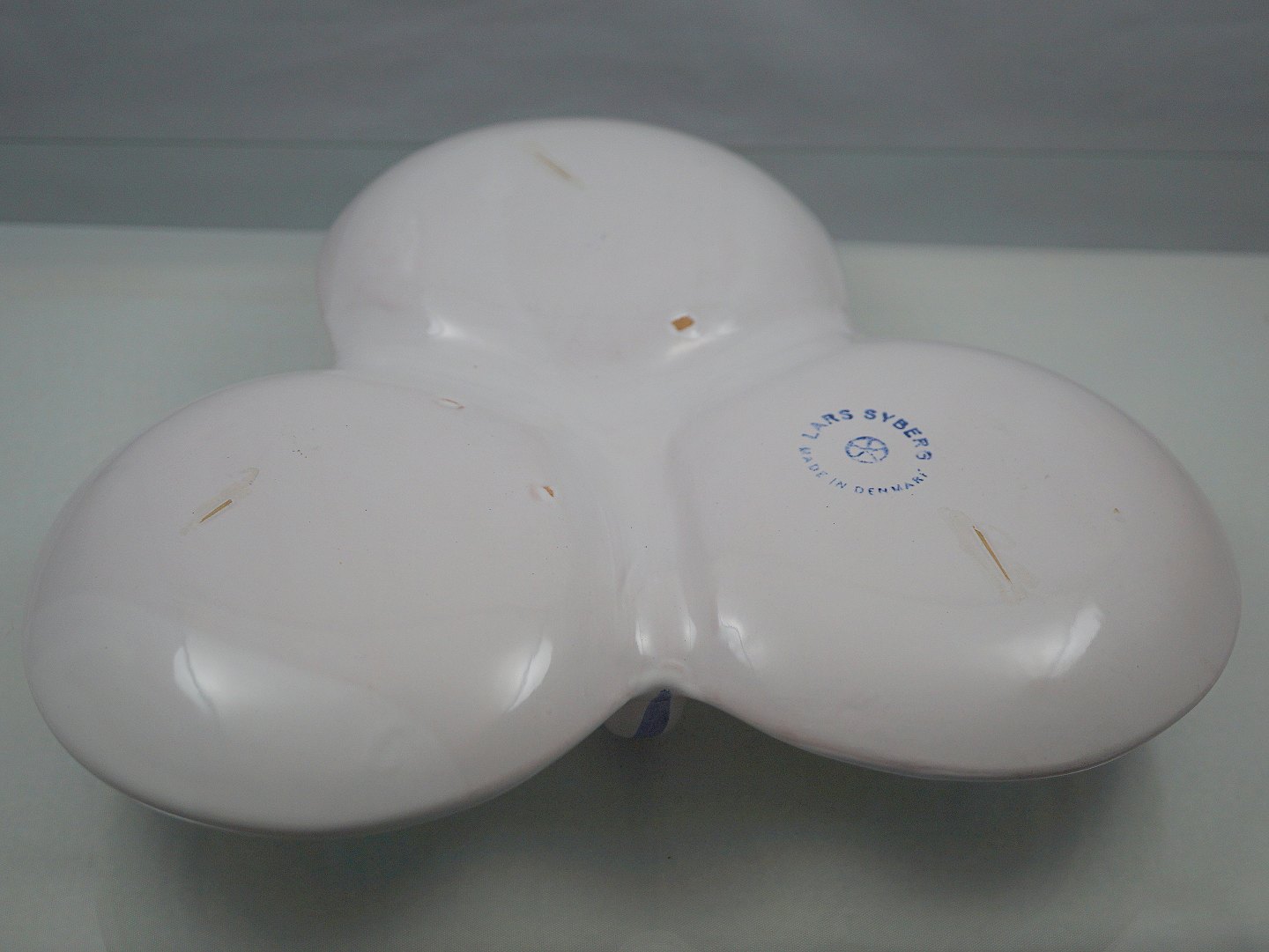 Lars Syberg, Cabaret, keramik, fad. Fadet har 3 hanke og er 3-delt, fadet er dekoreret med blå dekoration