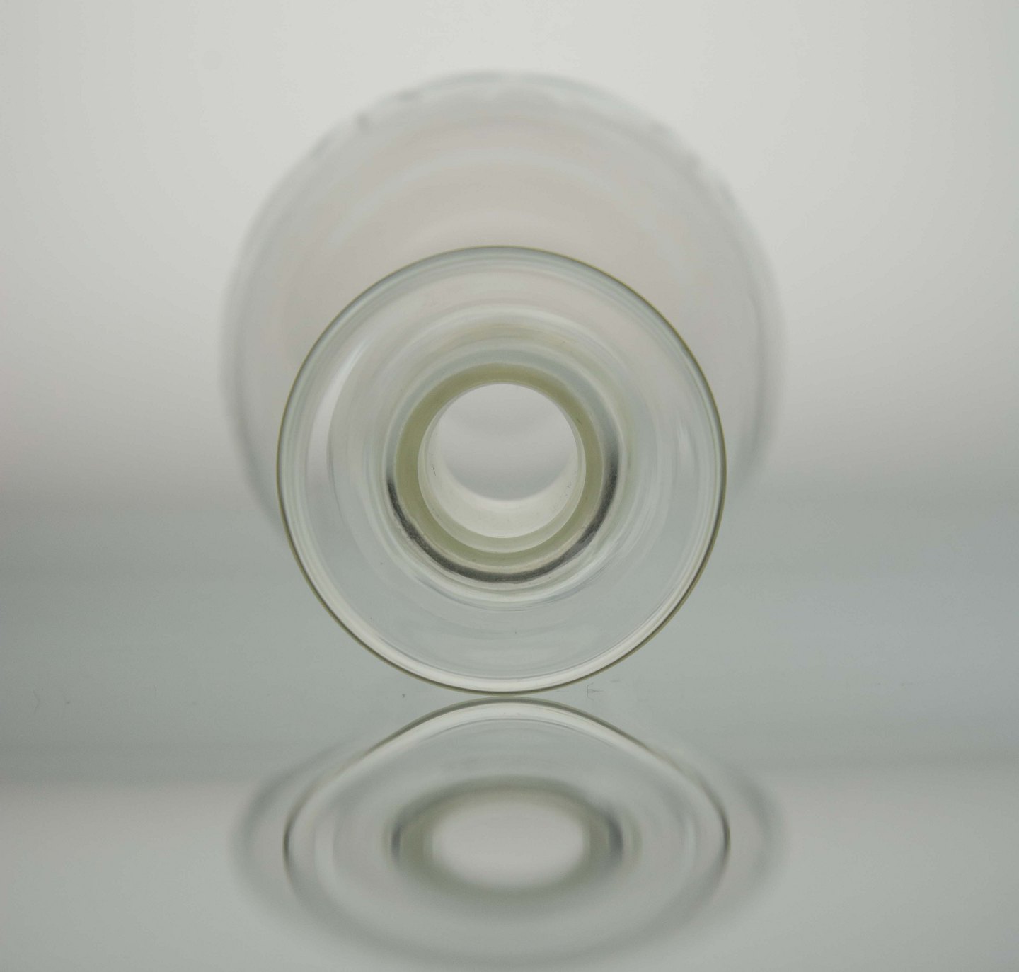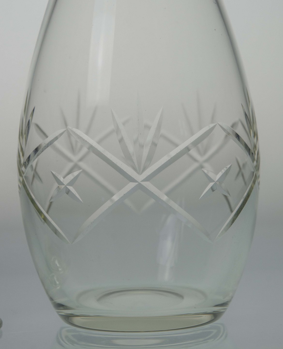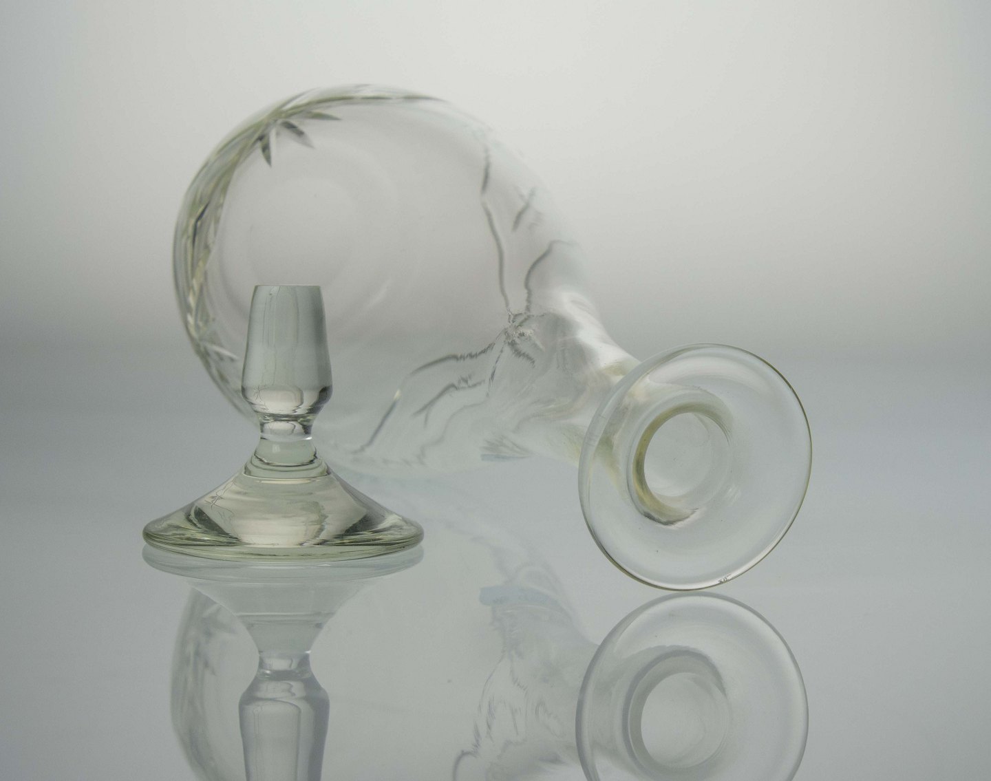 Glaskaraffel, karaffel med slibninger, glasflaske, flaske, presset glas