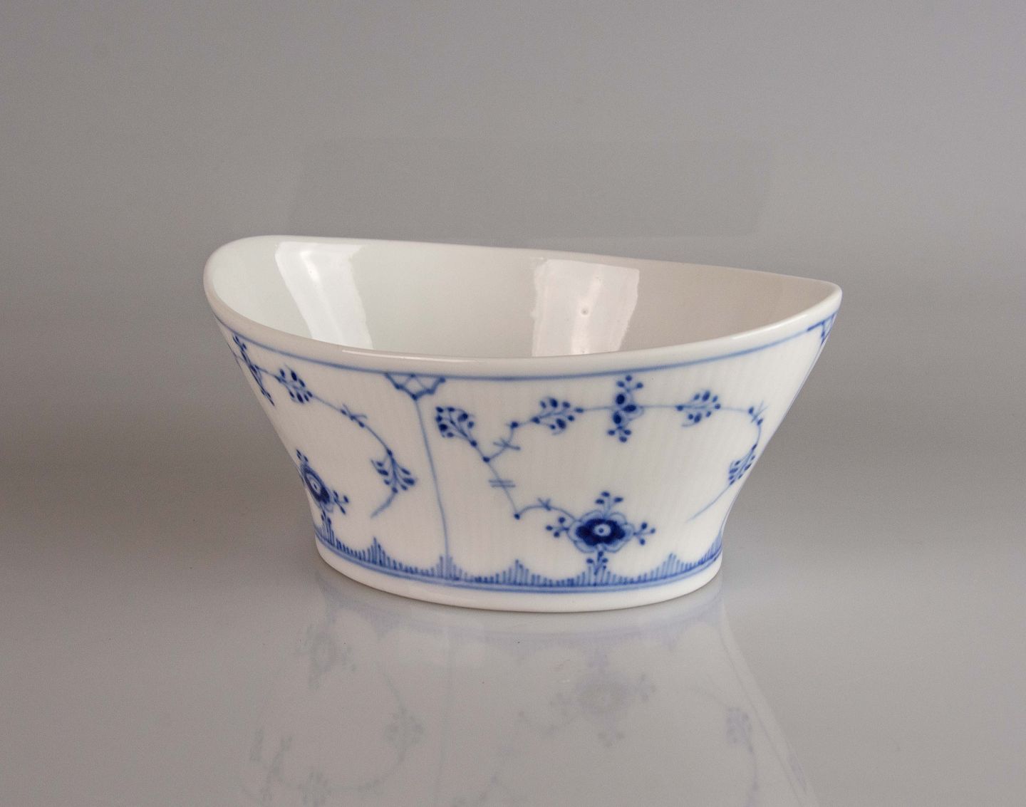 Oval skylleskål i porcelæn i serien musselmalet riflet nr. 1/485