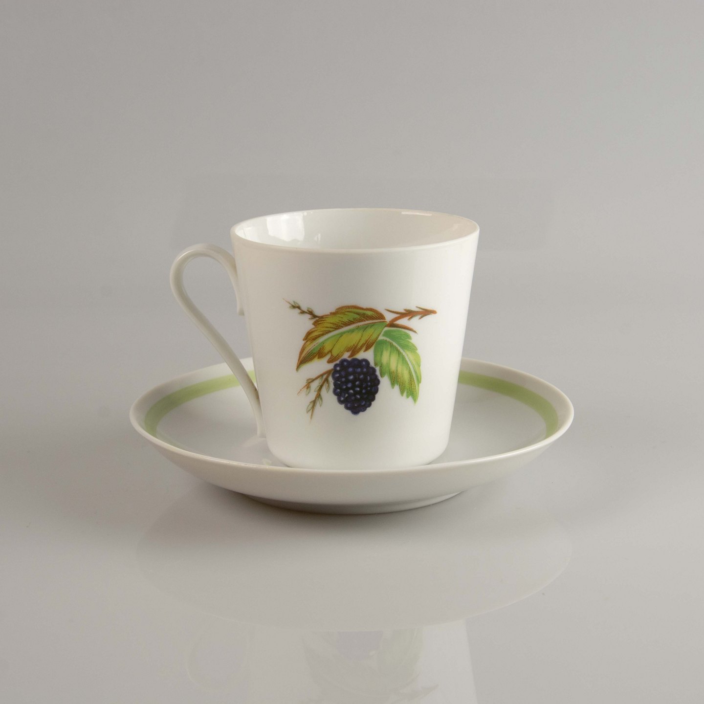 Kaffekop og kagetallerken Danild Lyngby 50 Frugt og Grønt også kendt som Picnic stellet.