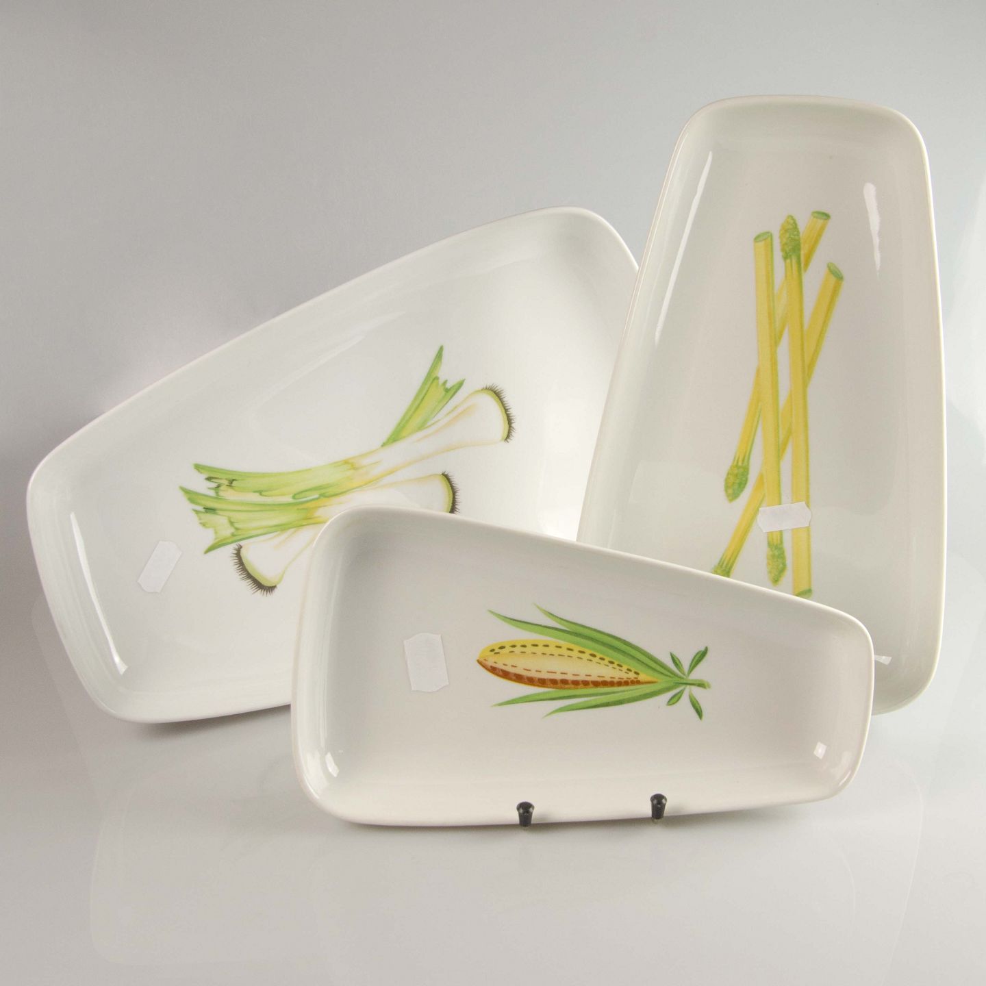 Mellem fad. Asparges motiv. H. 3,5 cm. L. 28 cm. B. 11-17 cm. Kr. 150,-
