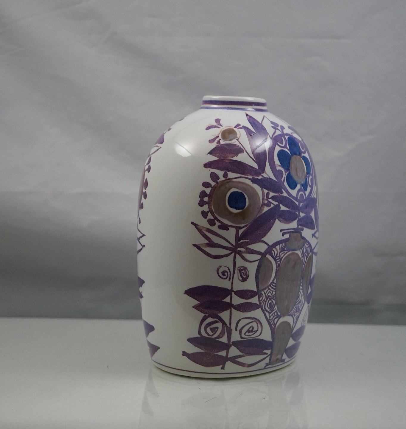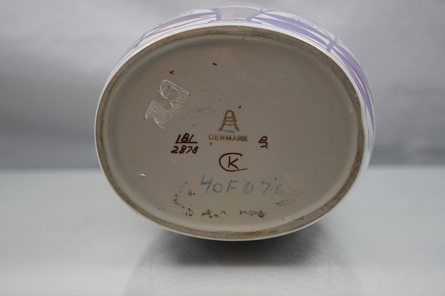 Royal Copenhagen, Tenera fajance vase No 181/2878, dekoreret med lilla blomstermotiv
