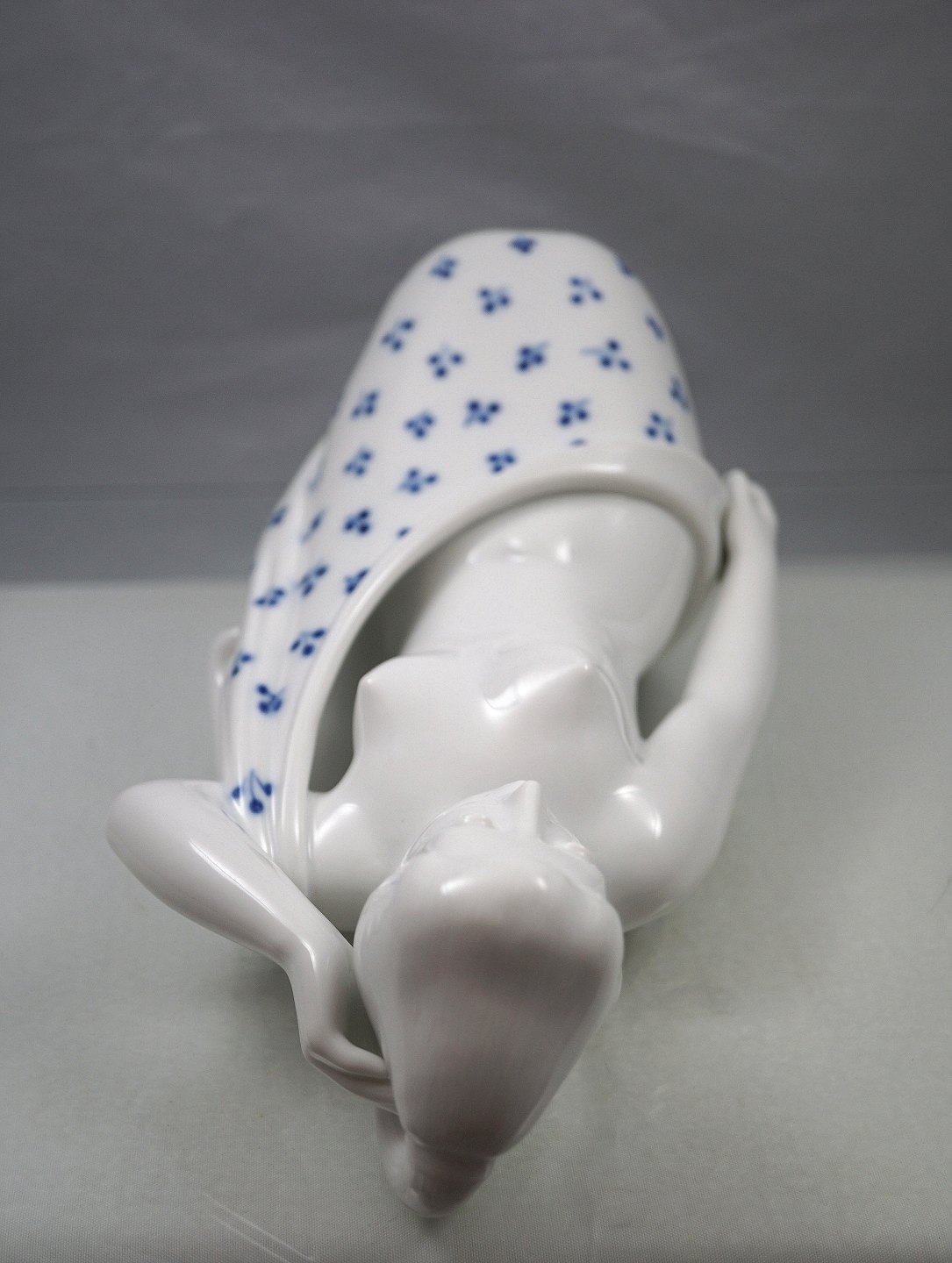 Figur i porcelæn med motiv af nøgen knælende kvinde med blåmalet klæde Nr. 4354.