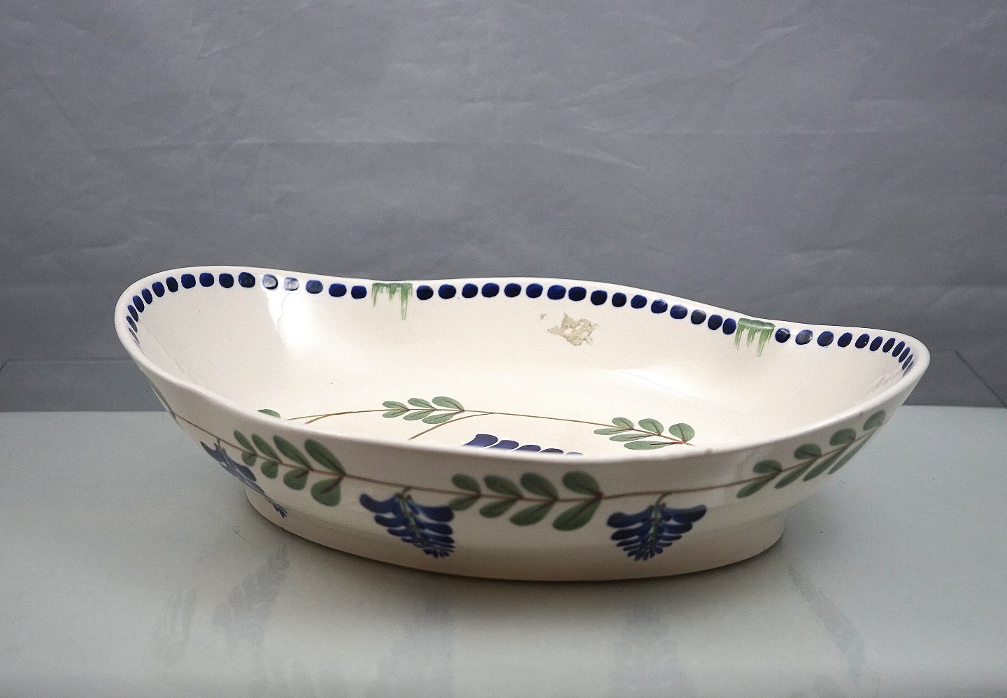 Det ovale fad har en let bølget kant og er i ellers pæn stand.
