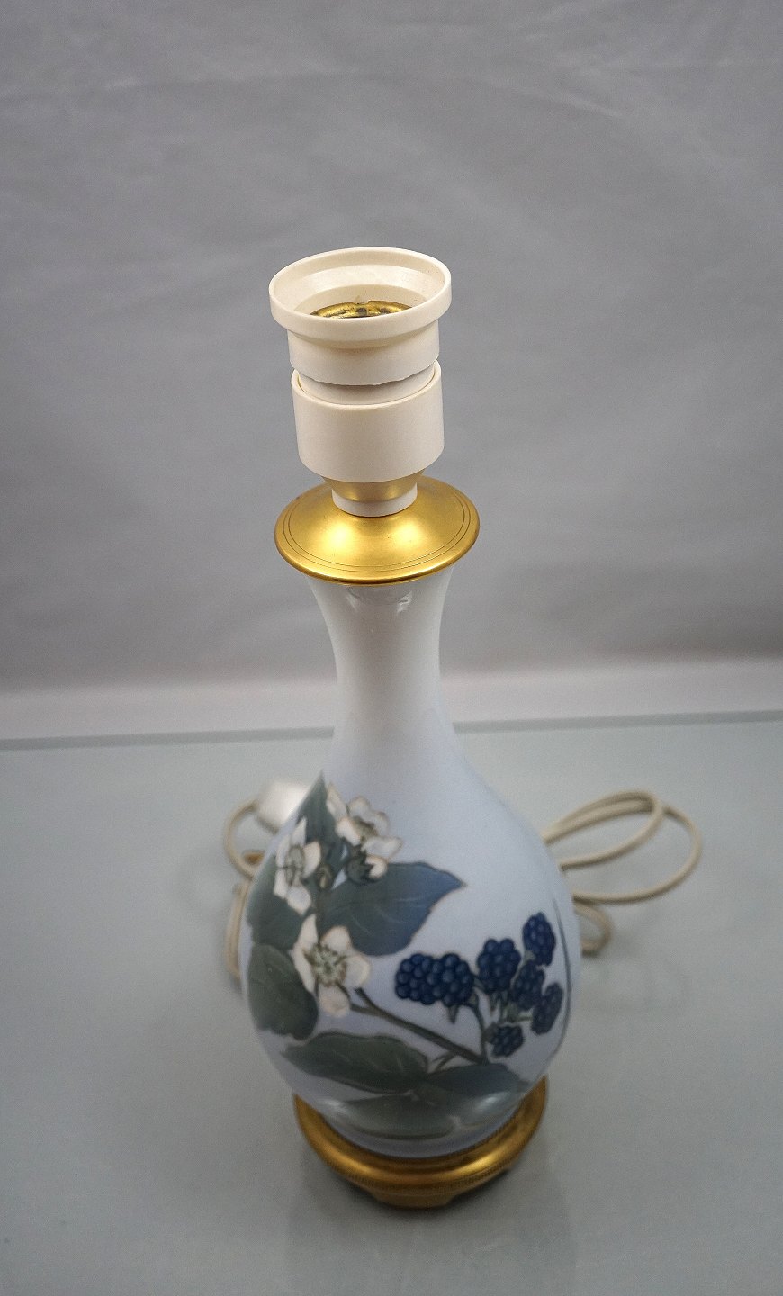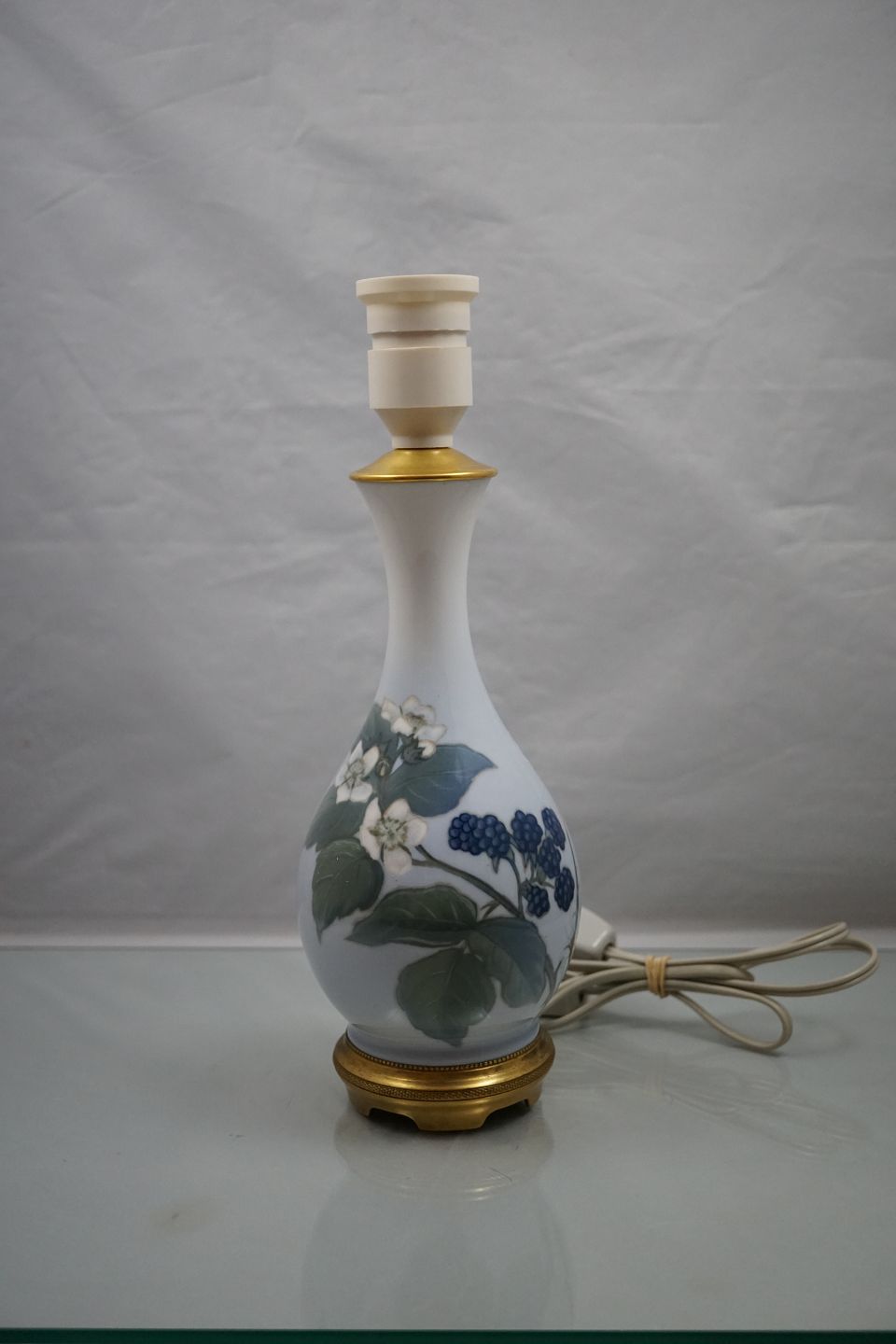 Royal Copenhagen , bordlampe, nr. 288/51, med blomster og brombær.