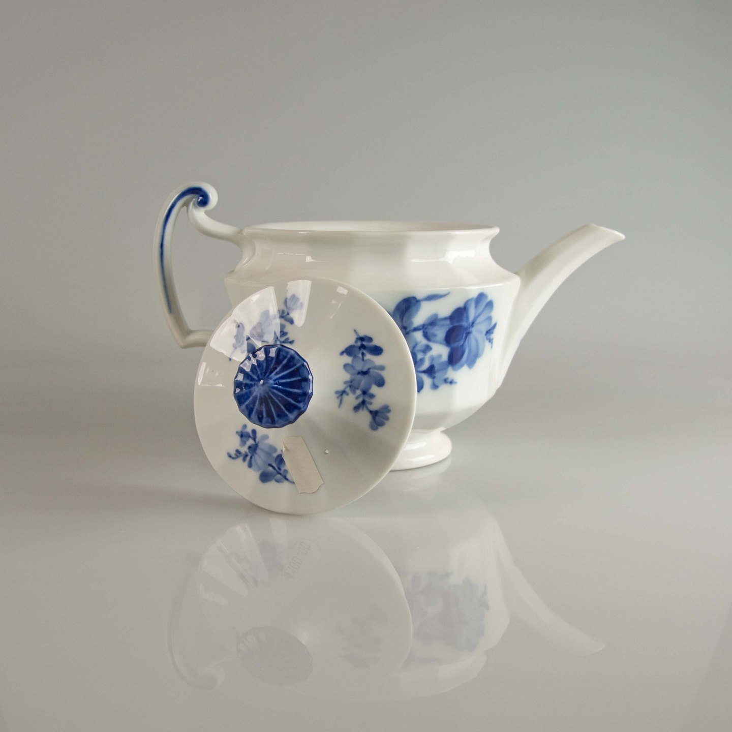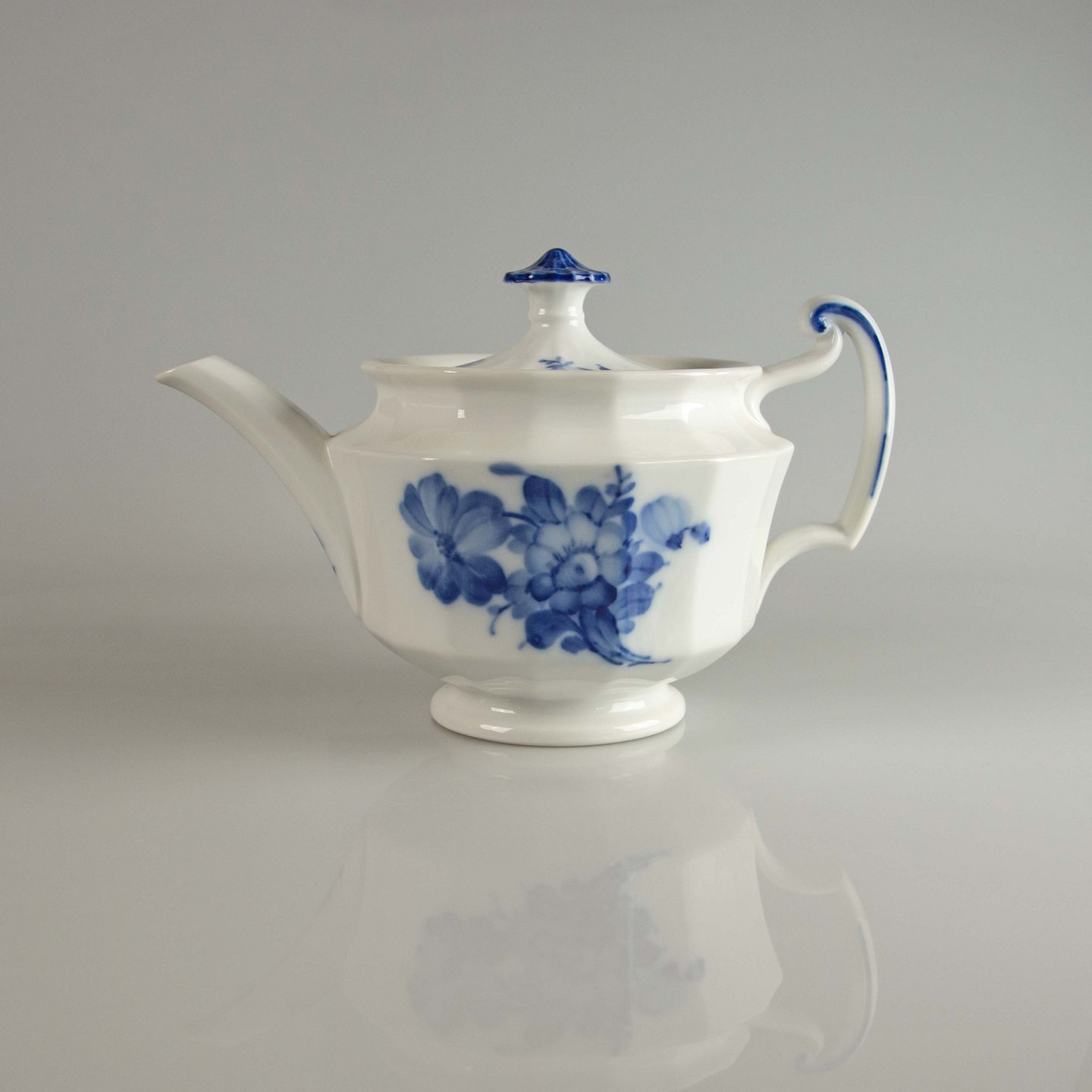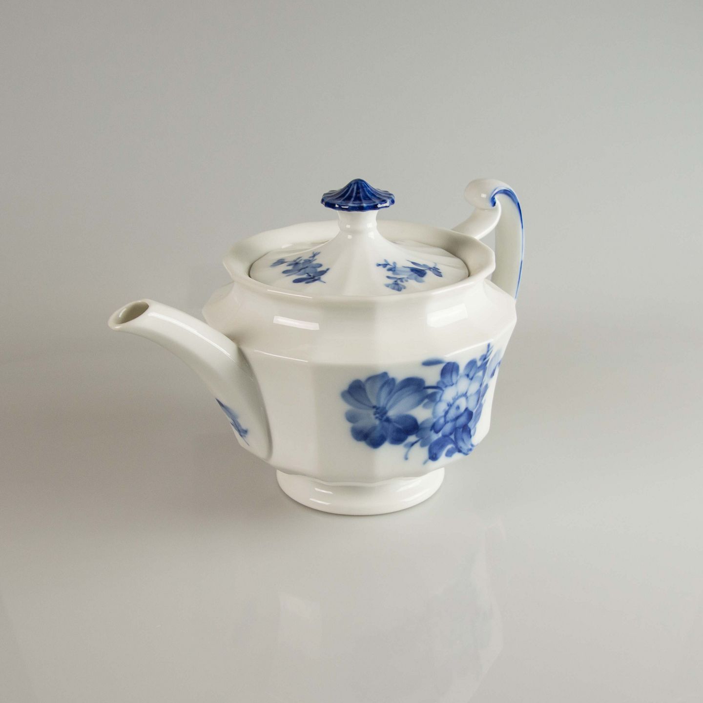 Kgl. tekande, Royal Copenhagen Blå blomst kantet kande, Royal Copenhagen tekande nr. 10/8503, Kongelig tepotte, RC blå blomst kande