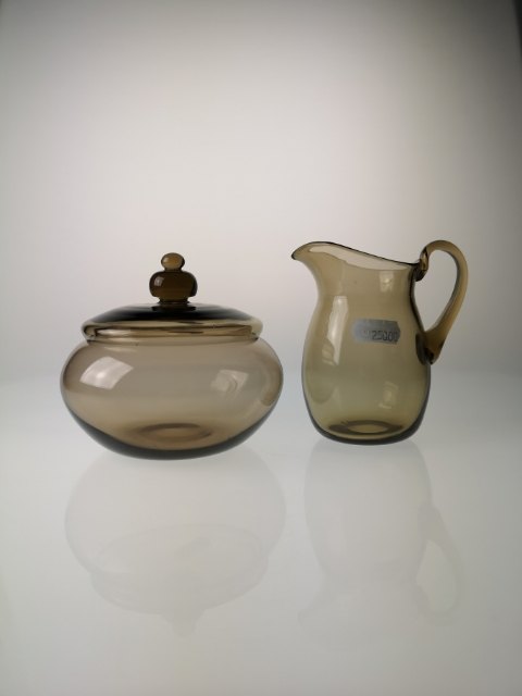 Røgfarvet/brunlige glas med dekorativ fod.