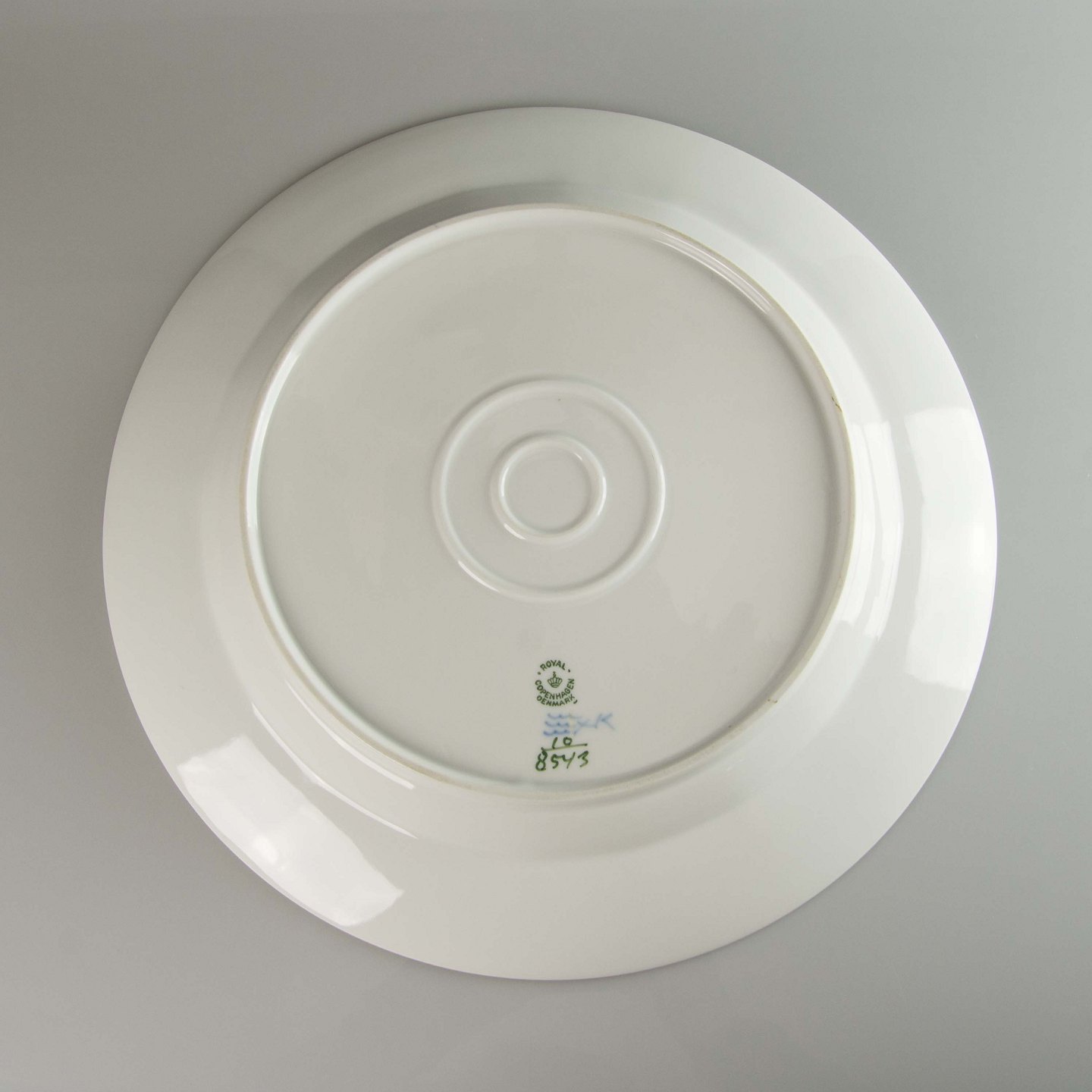 Blå blomst kantet stort rundt fad i porcelæn nr. 10/8543