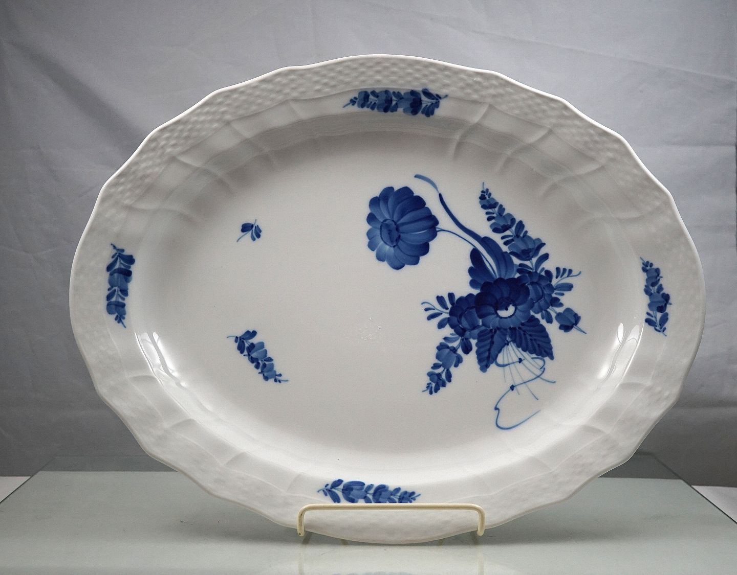 Royal Copenhagen. Blå blomst, nr. 375, stegefad med svejfet flettet-kant.