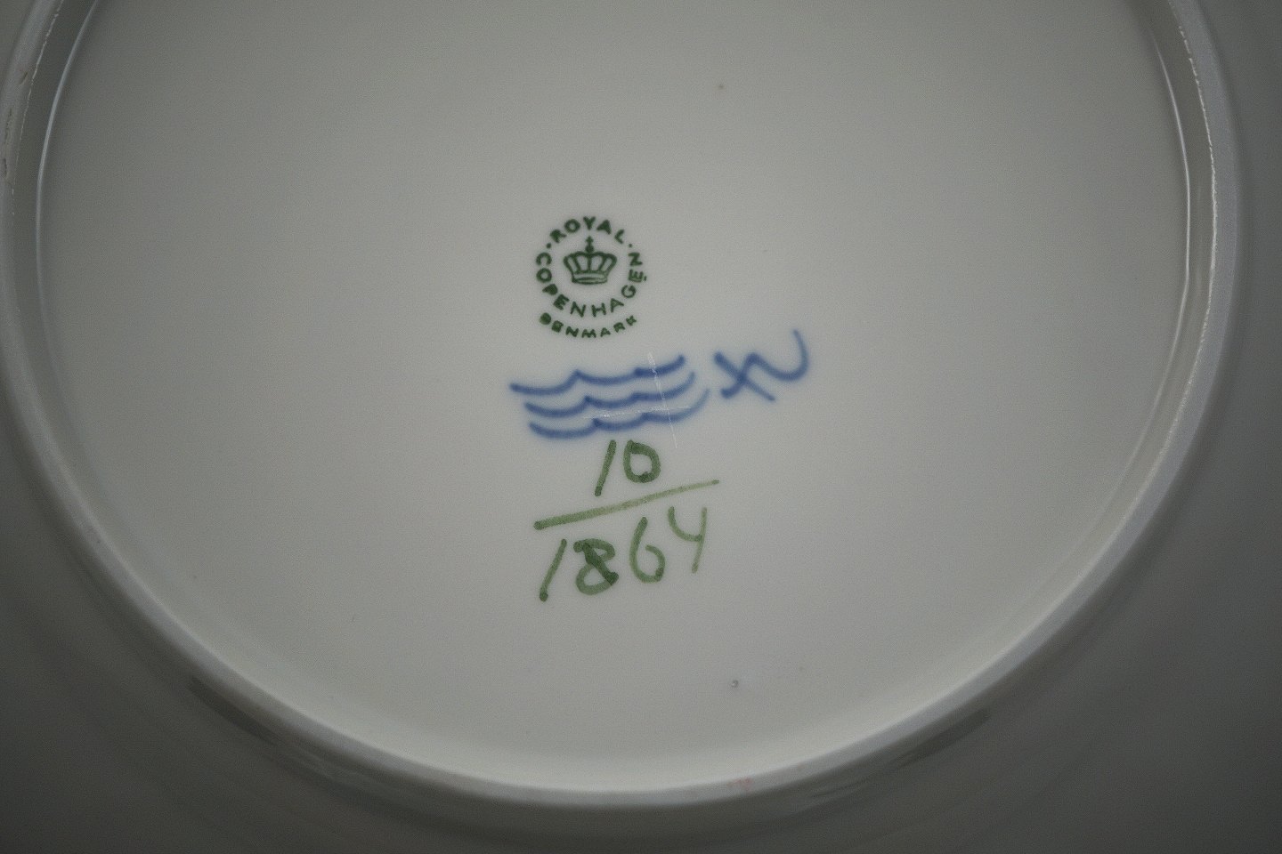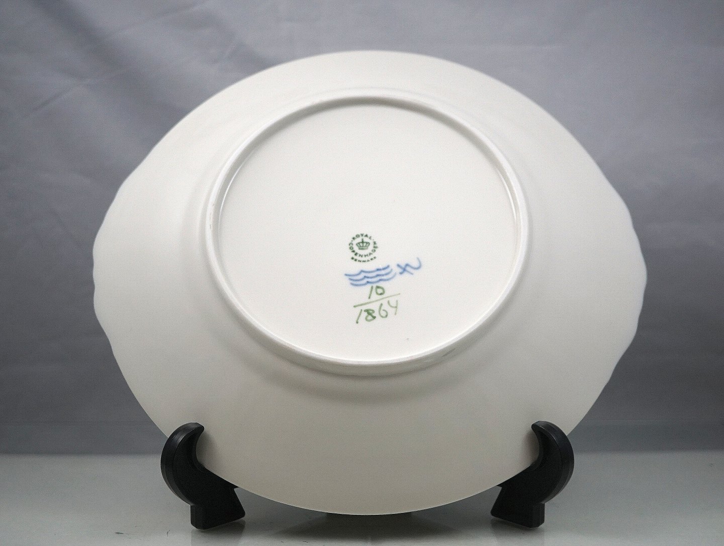 Royal Copenhagen. Blå blomst, nr 10/1864. Blå blomst fad med hanke og svejfet kant. 2. sortering. Royal Copenhagen begyndte at producere Blå Blomst i 1799, det blev stel nr 10. Produktionen ophørte i 2000
