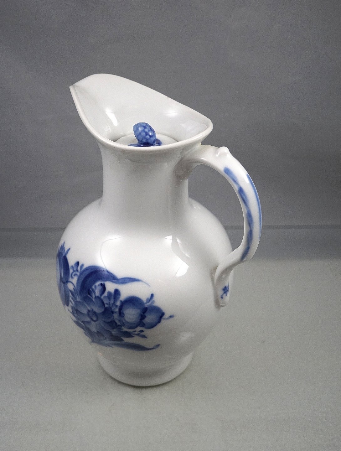 Royal Copenhagen. Blå blomst, chokoladekande. Nr. 10/8189 dette nr. står under kanden, men den er fundet under nr. 10/8147. Kanden har flette kant.