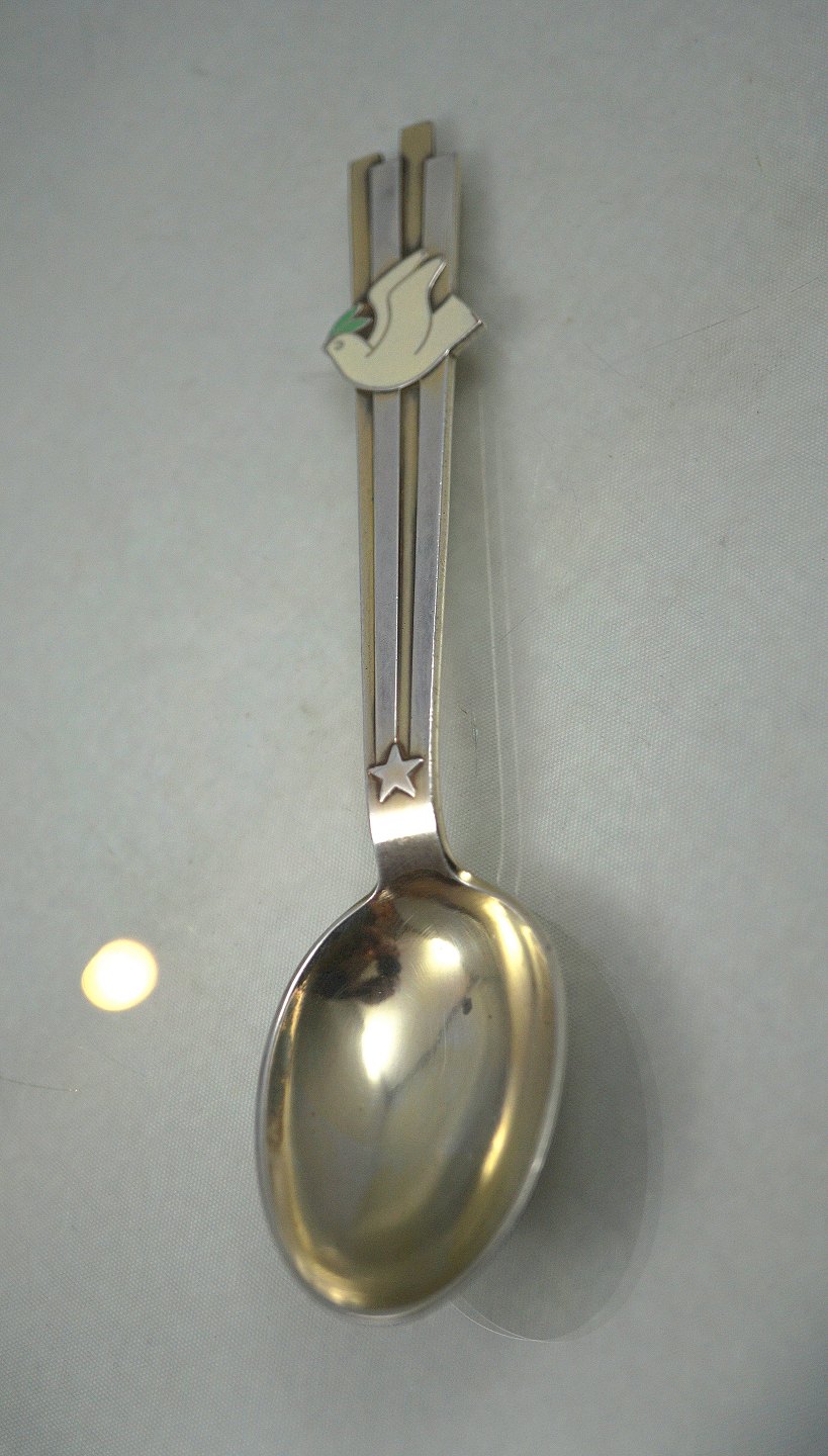 Anton Michelsen. Juleske 1943, skeen er i 3-tårnet sølv. Motivet er fredsdue.