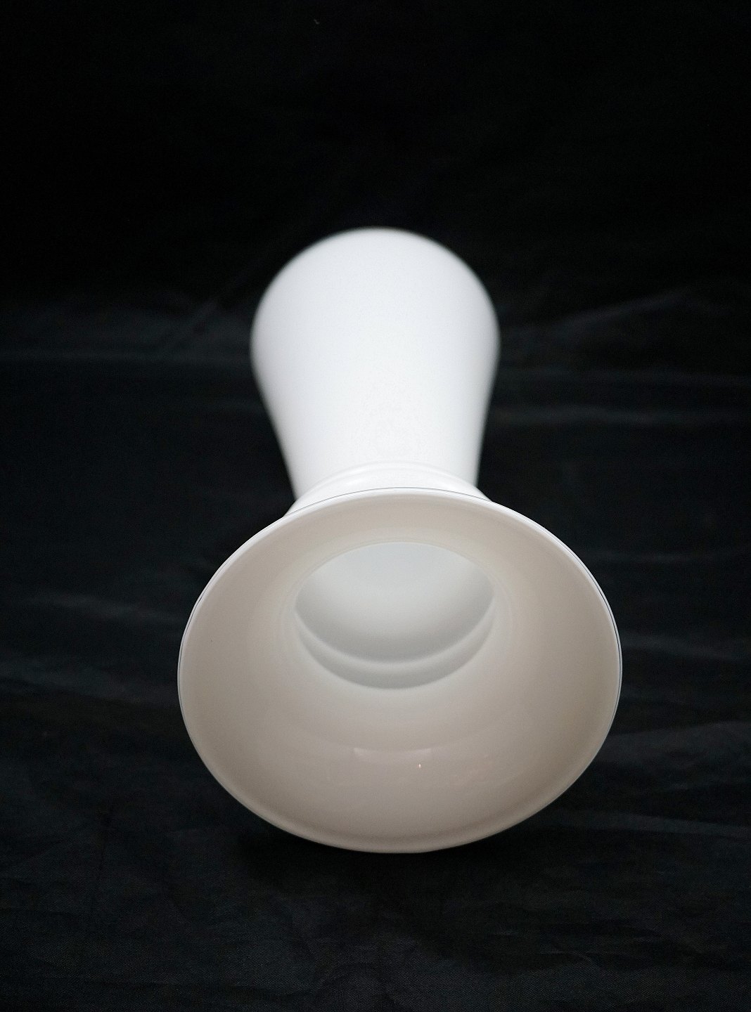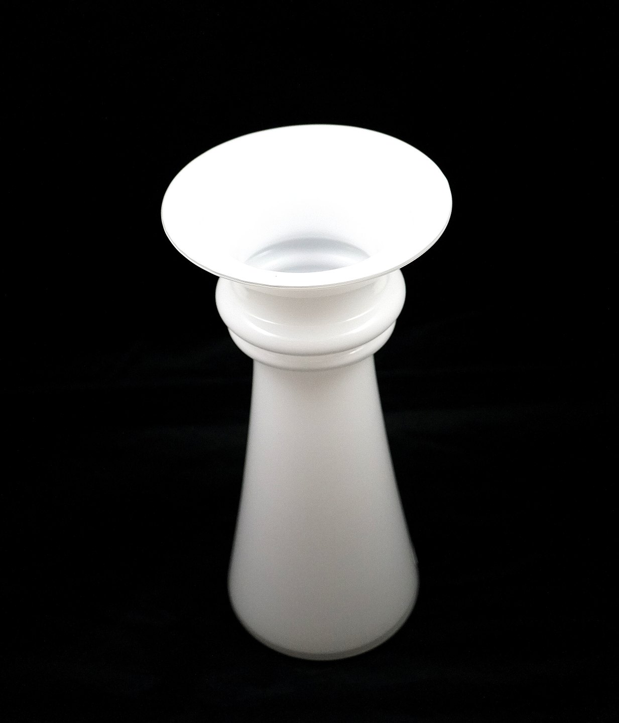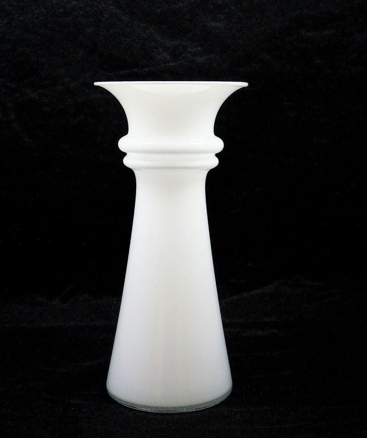 Holmegaard Glasværk. Harmony vase af opalhvidt glas med krystalglas som overfang, vasen har udsvejet kant.