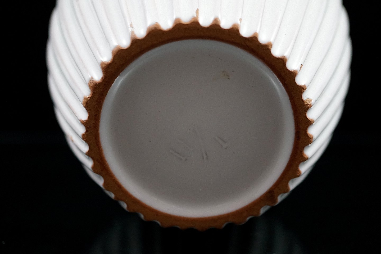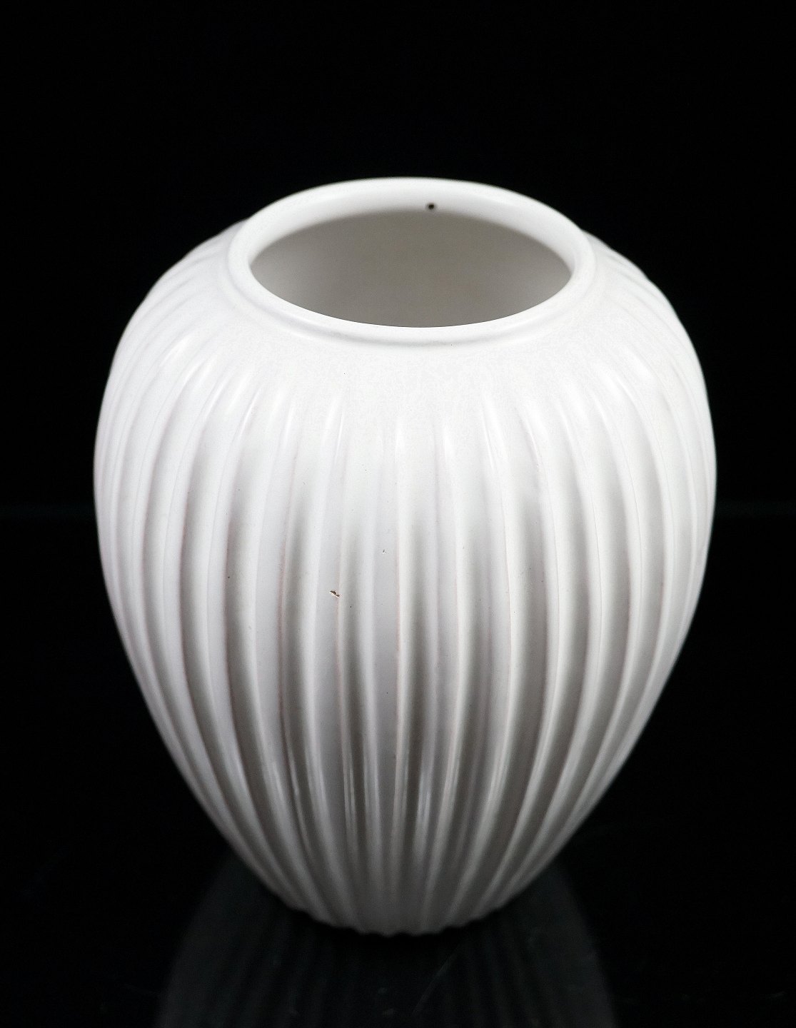 Eslau Design, formentlig Riflet vase, nr. 11/1. Vasen er riflet og hvidglaseret.