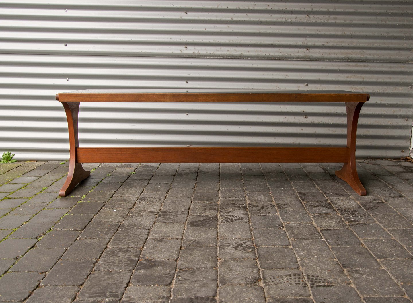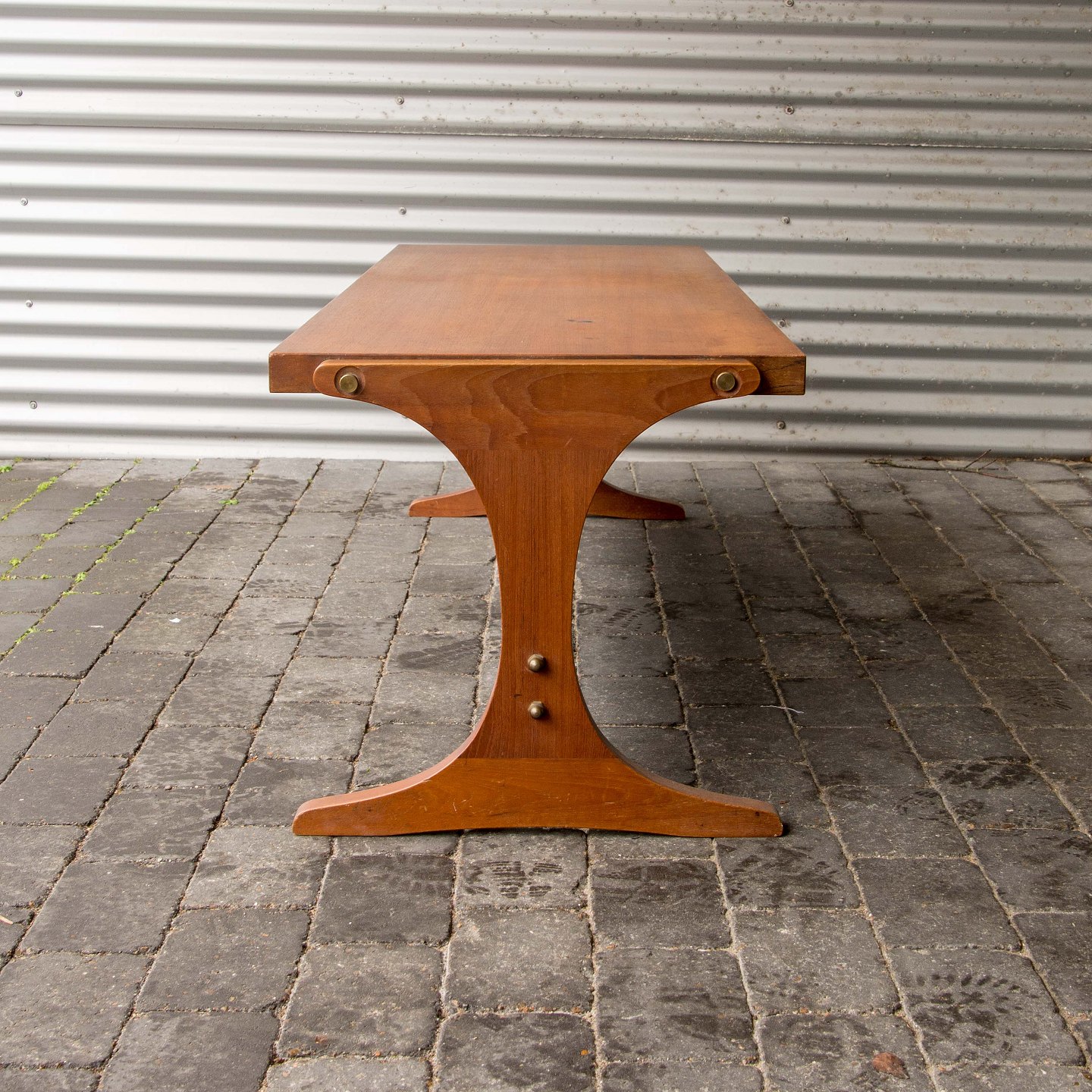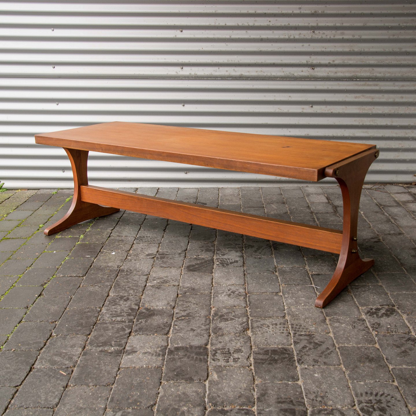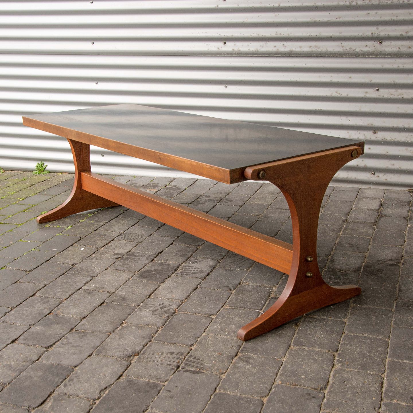 Aflangt sofabord i teaktræ med vendbar topplade i teak og sort formica