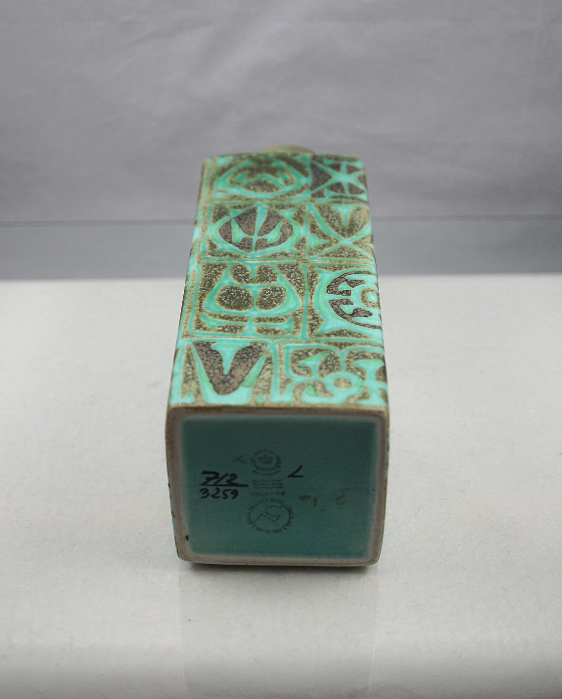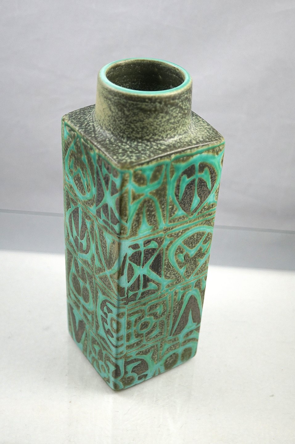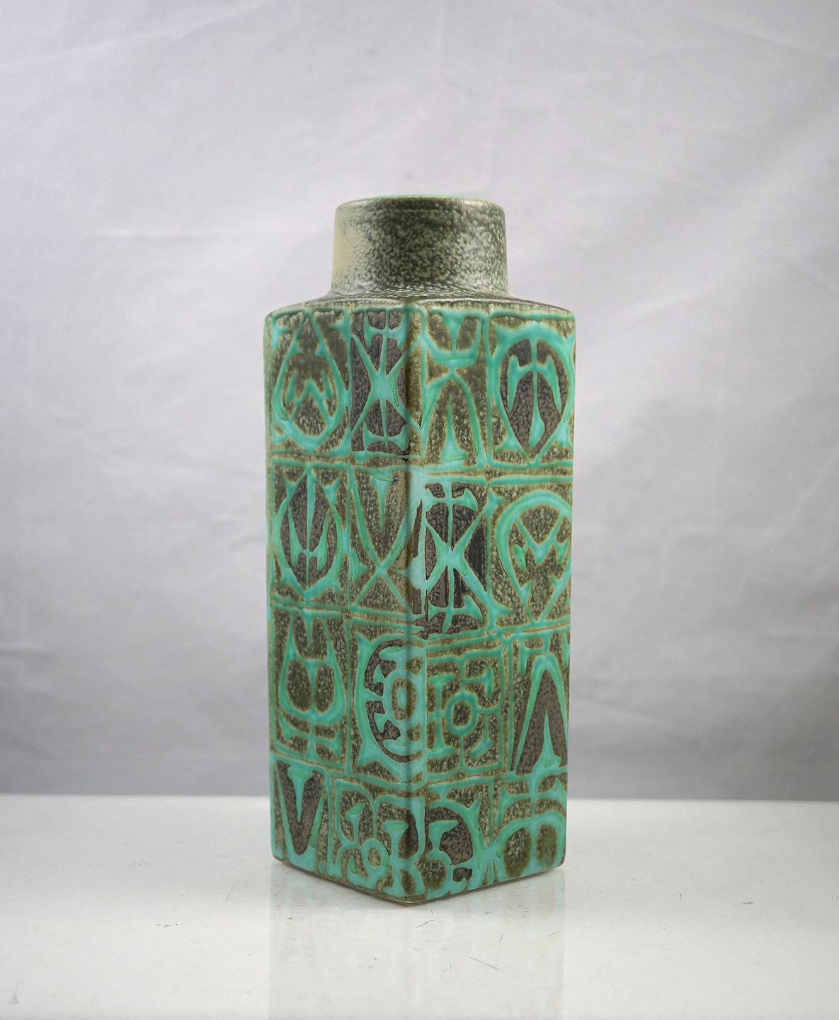 Kgl. Baca vase nr. 712/3259. 4-kantet fajance vase med grønt/sort mønster