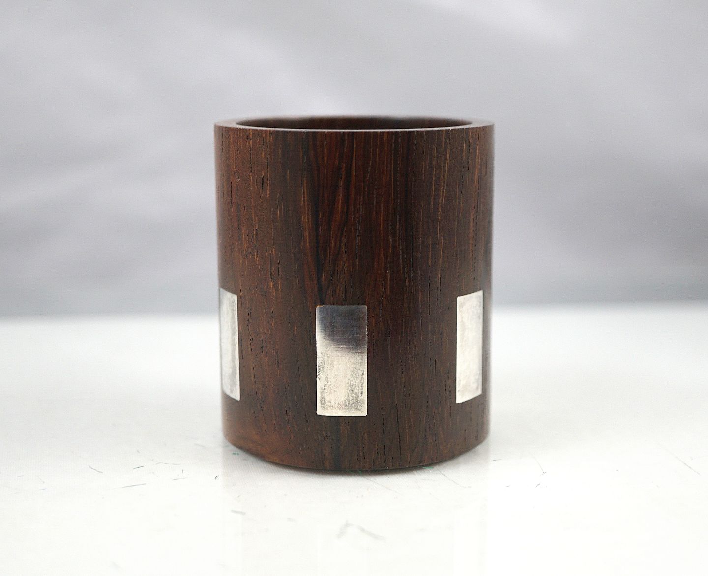 Hans Hansen sølvsmed. Bordlighterholder udført i palisandertræ med indlagte sølv 4-kanter