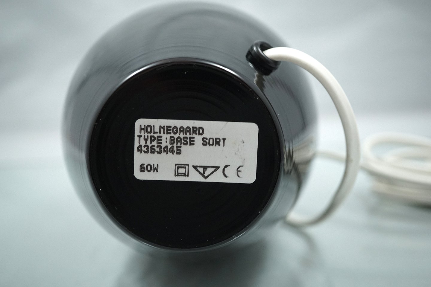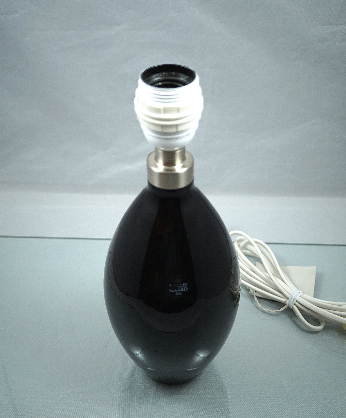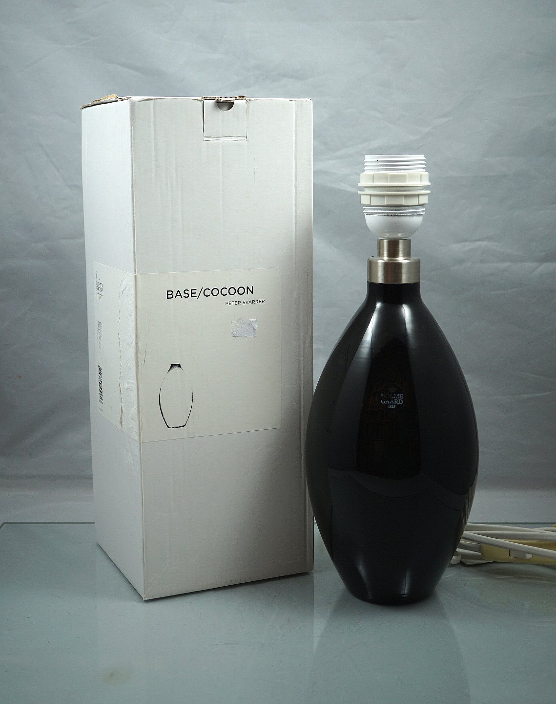 Holmegaard Glasværk. Bordlampe nr. 1825. Base/Cocoon bordlampe af sort opalglas med klart overfang. Vase kommer i original kasse