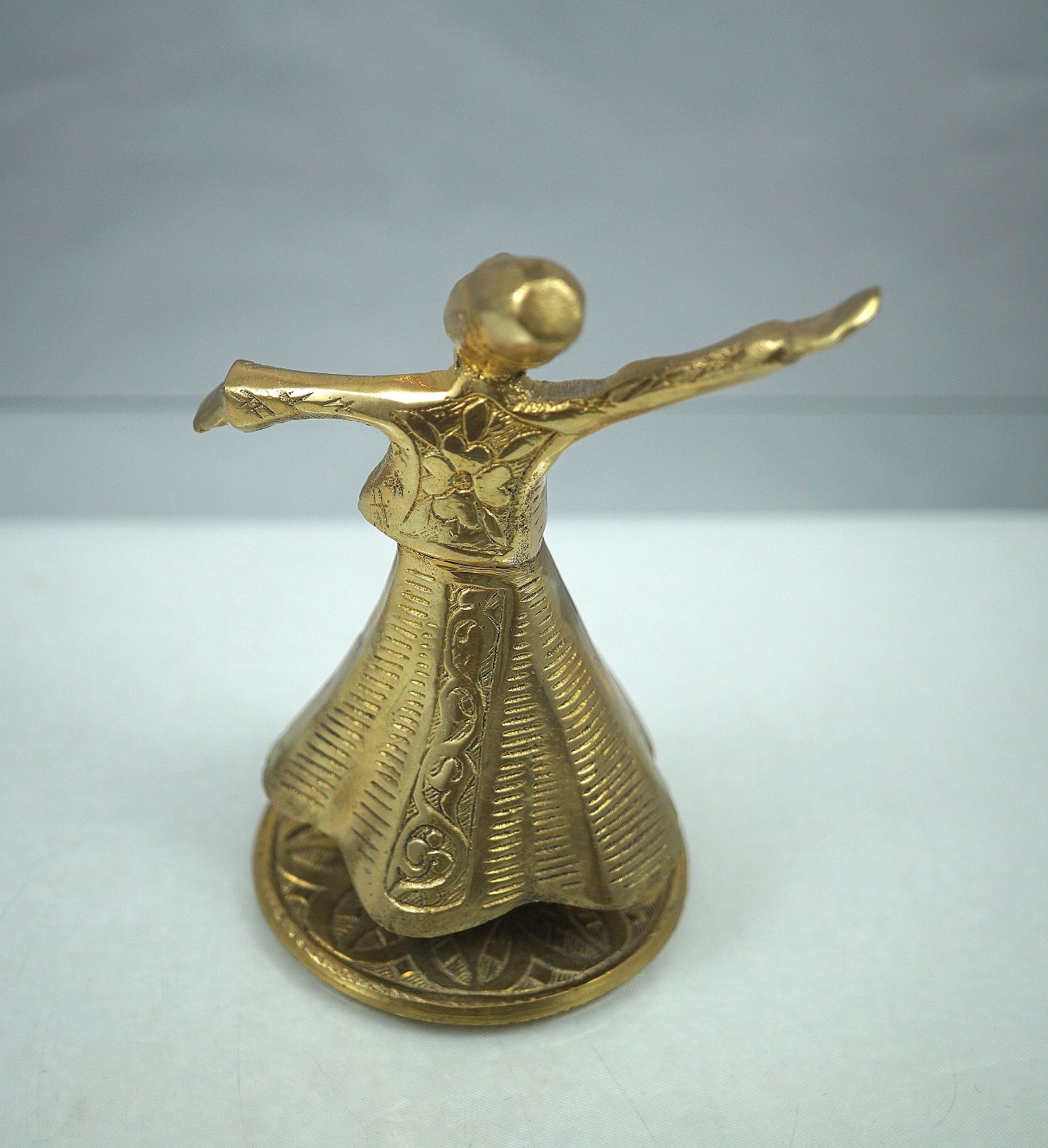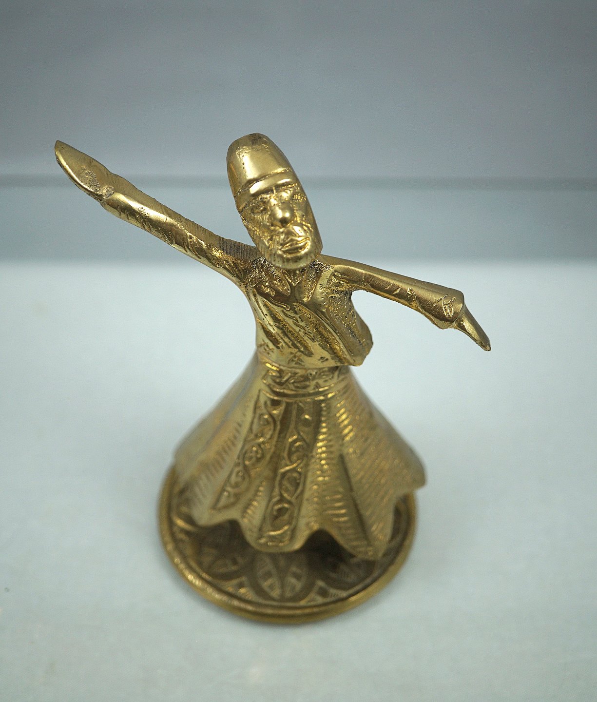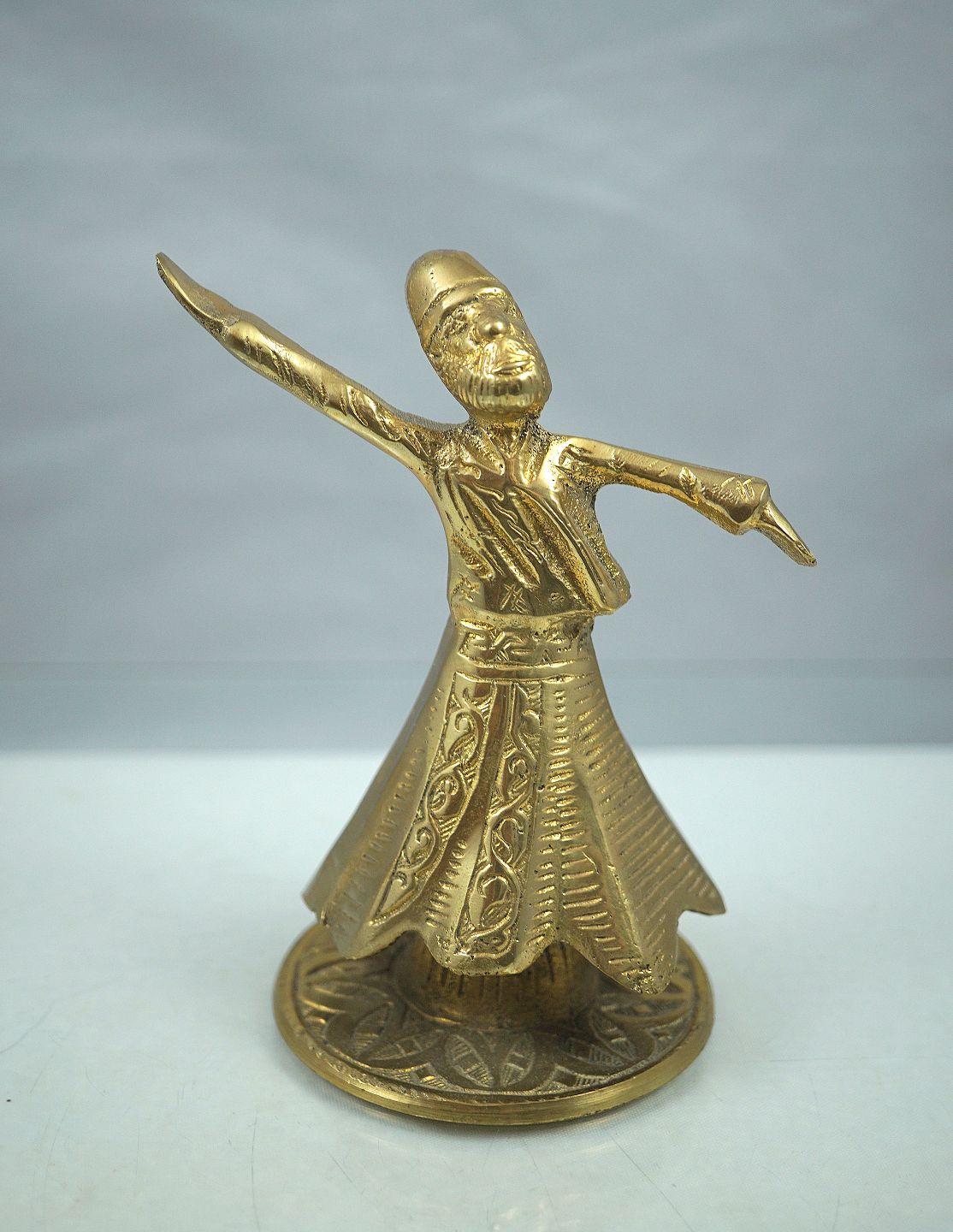 Messing orientalsk, dansende mand. Manden kan dreje rundt på foden