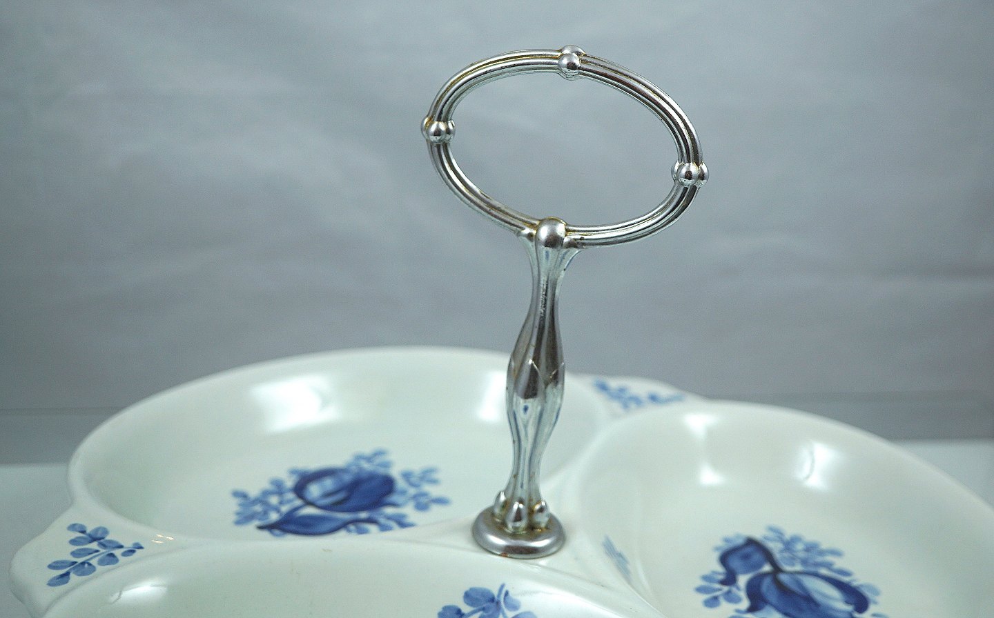 KGL. Aluminia. Tranquebar nr. 11/1432, Cabaretfad, fadet har sølvfarvet håndtag.