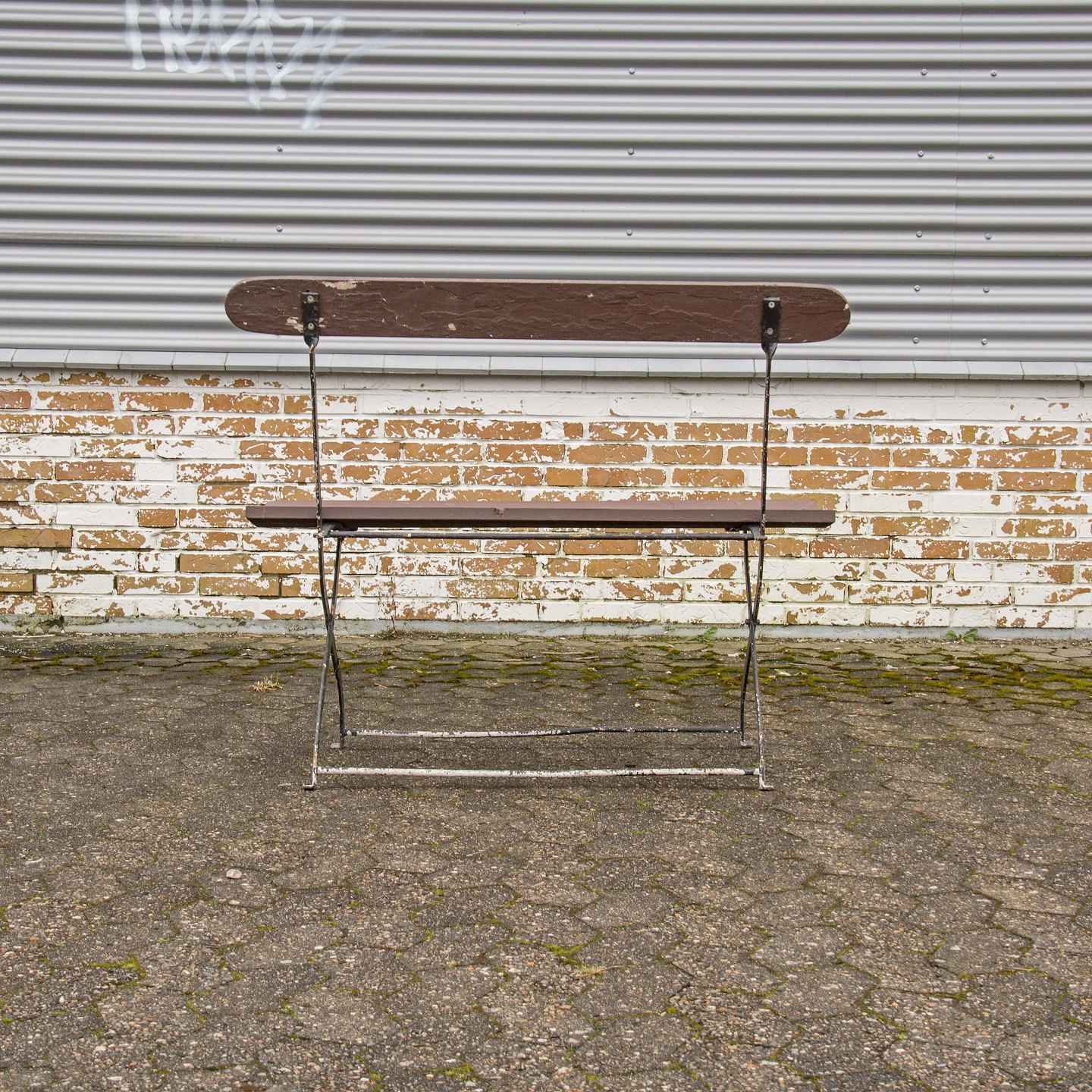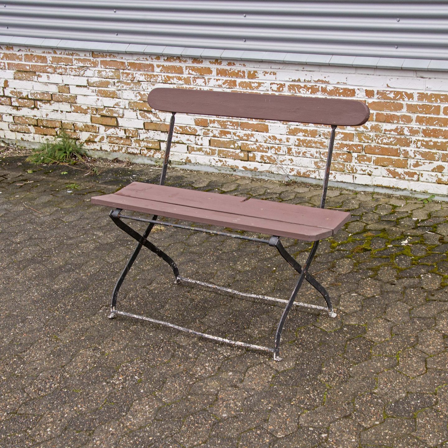 To personers bænk i sortlakeret metal med sæde og ryg i træ