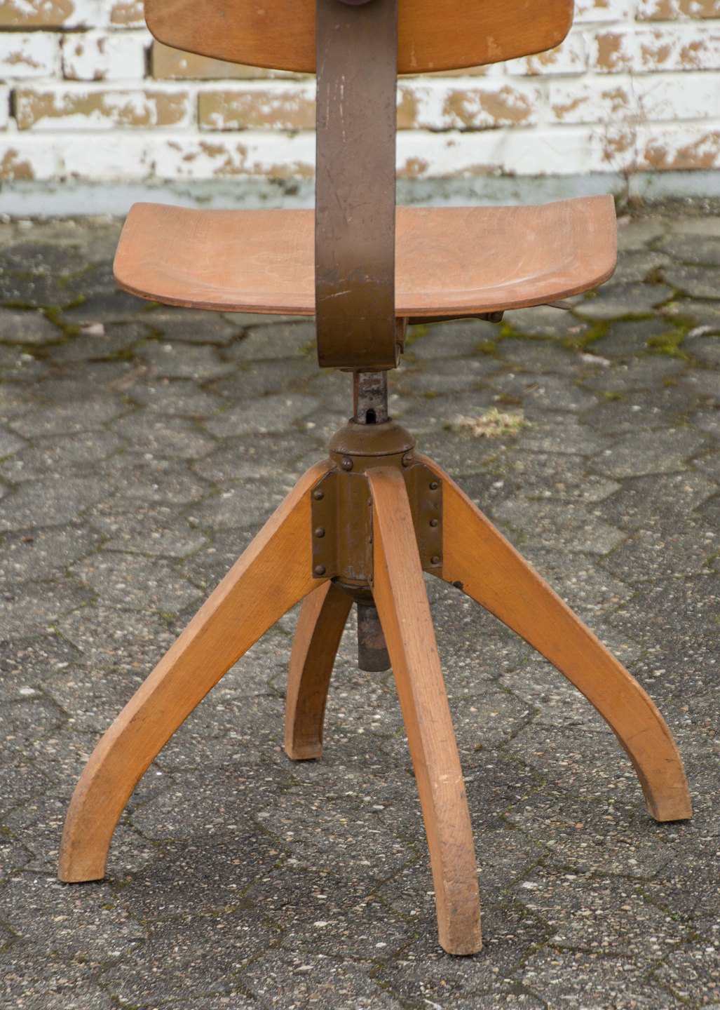 Industrielstol med justerbar ryglæn og højde. Stolen er medbragt af den Tyske hær under 2. Verdenskrig.