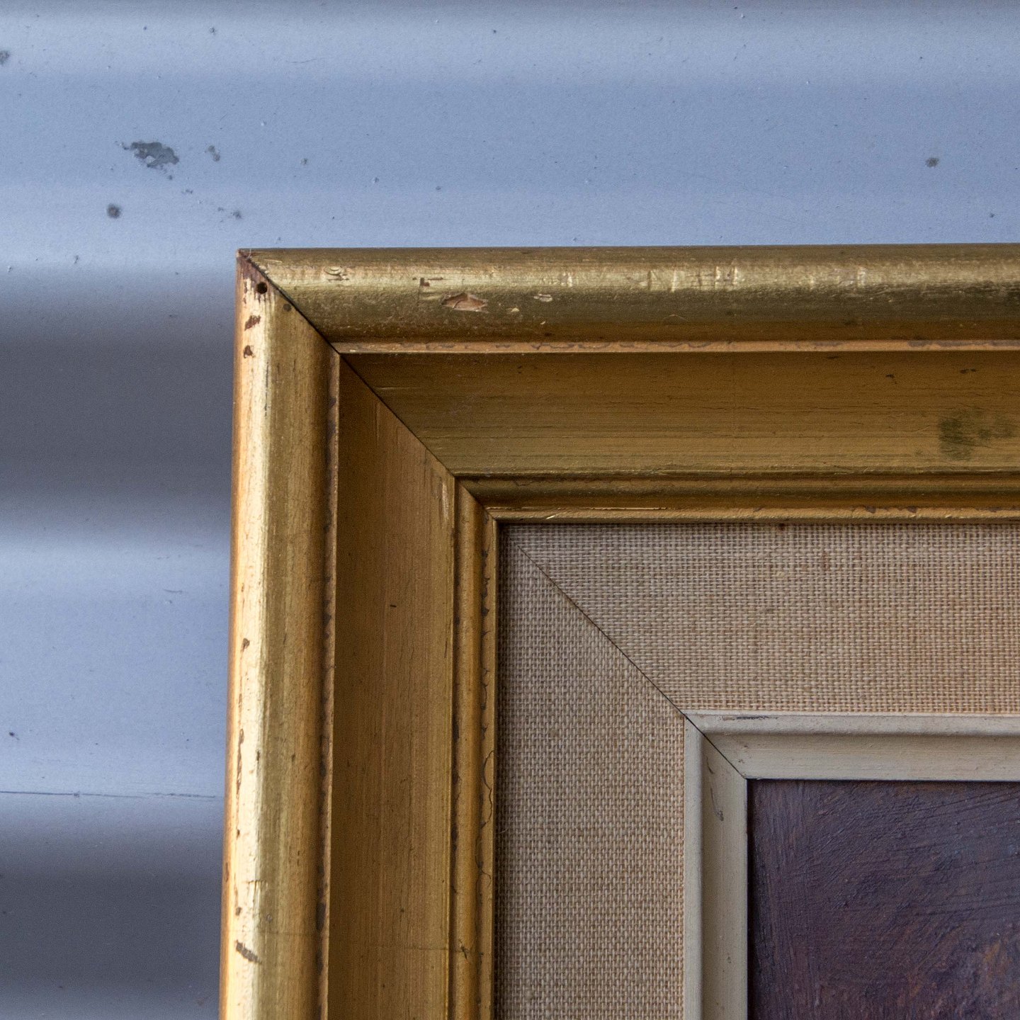 Maleri af dame i natten, olie på plade med guld ramme.