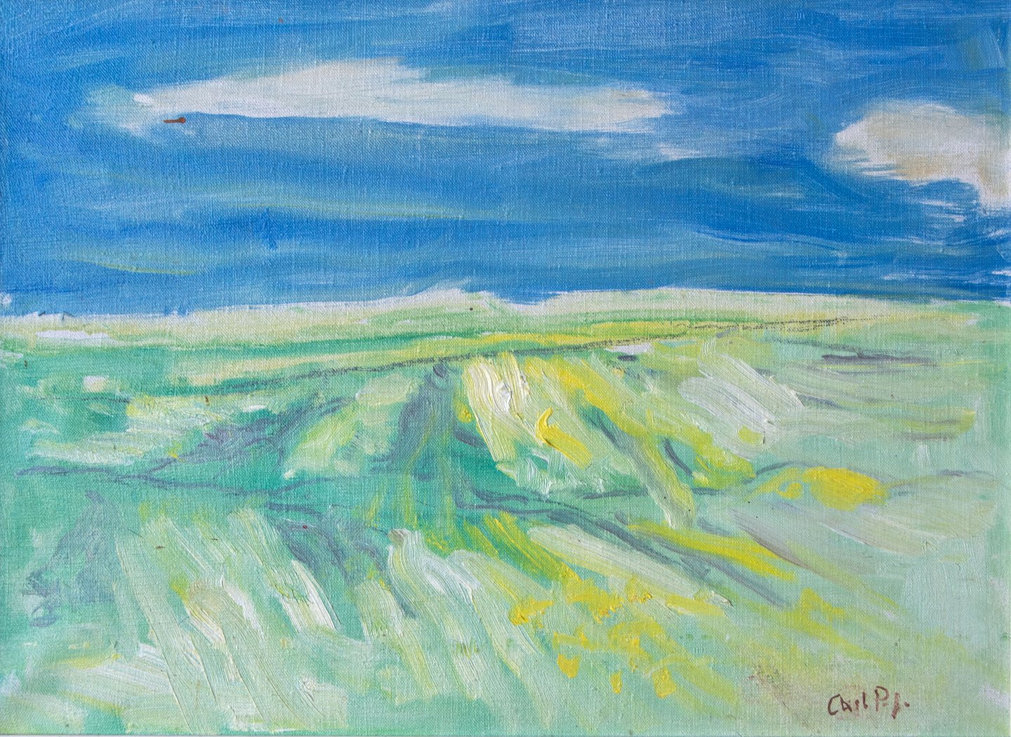 Abstrakt naturmaleri med motiv marker og enge