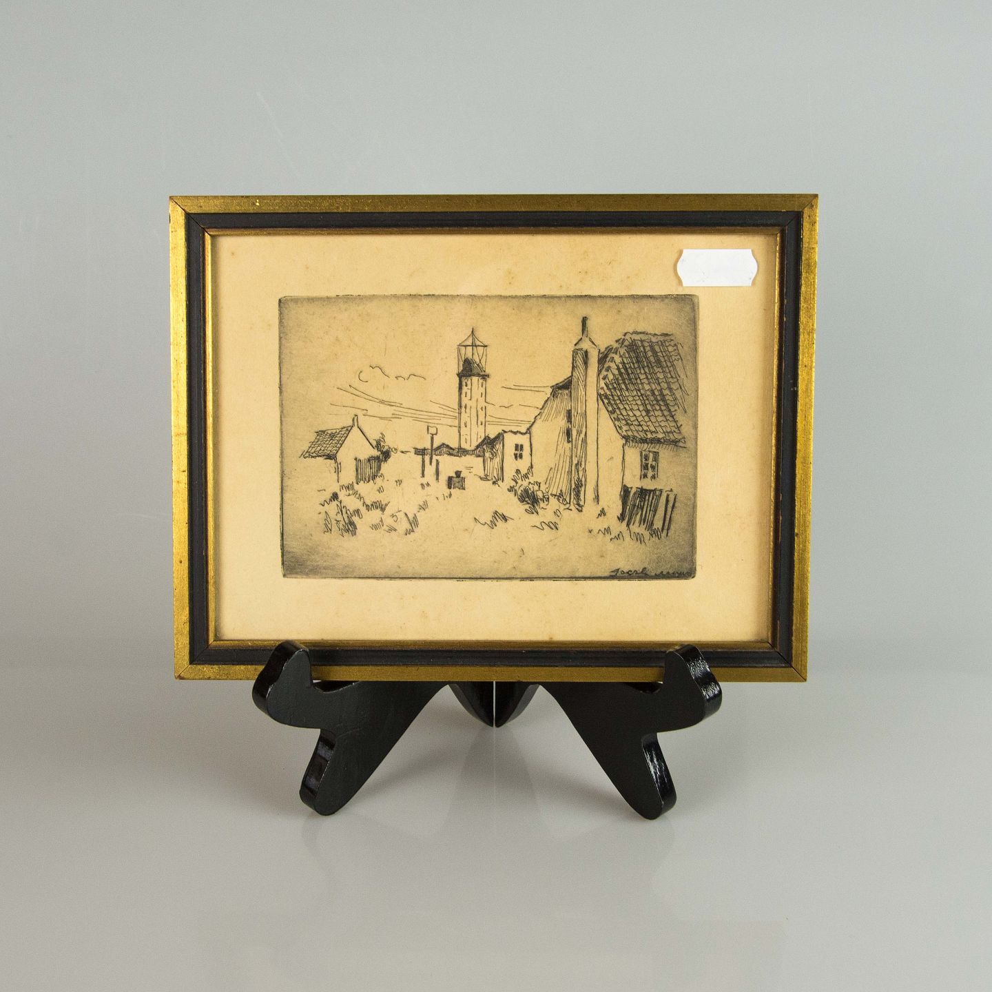 Radering med motiv af Gammel Hune ved Skagen Fyrbakke