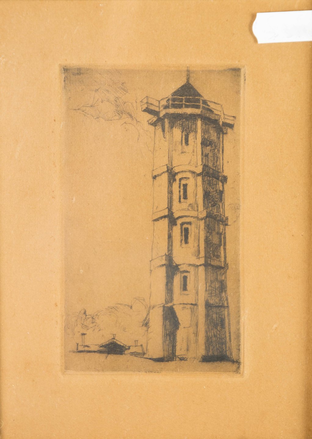 Radering med motiv af Gammel fyrtårn ved Skagen