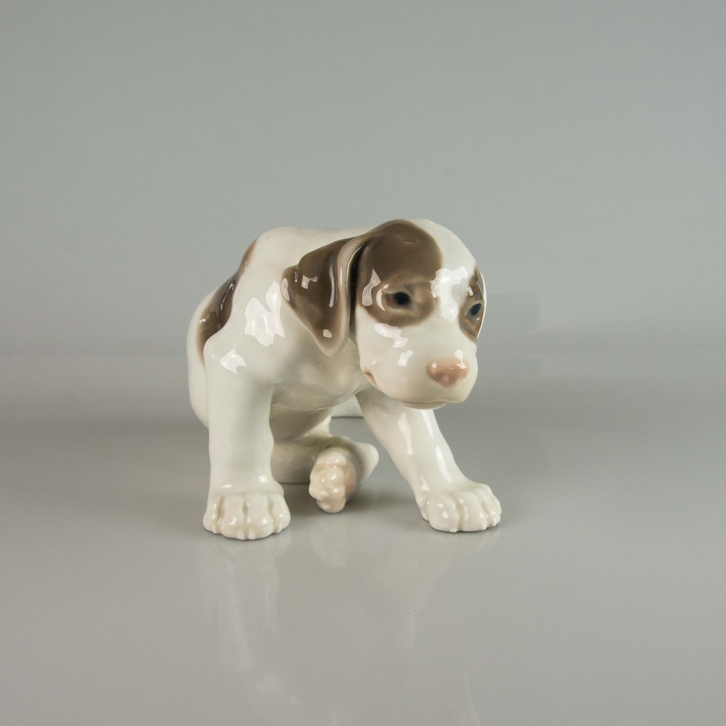Figur i porcelæn med motiv af siddende pointerhvalp, der klør sig nr. 2060