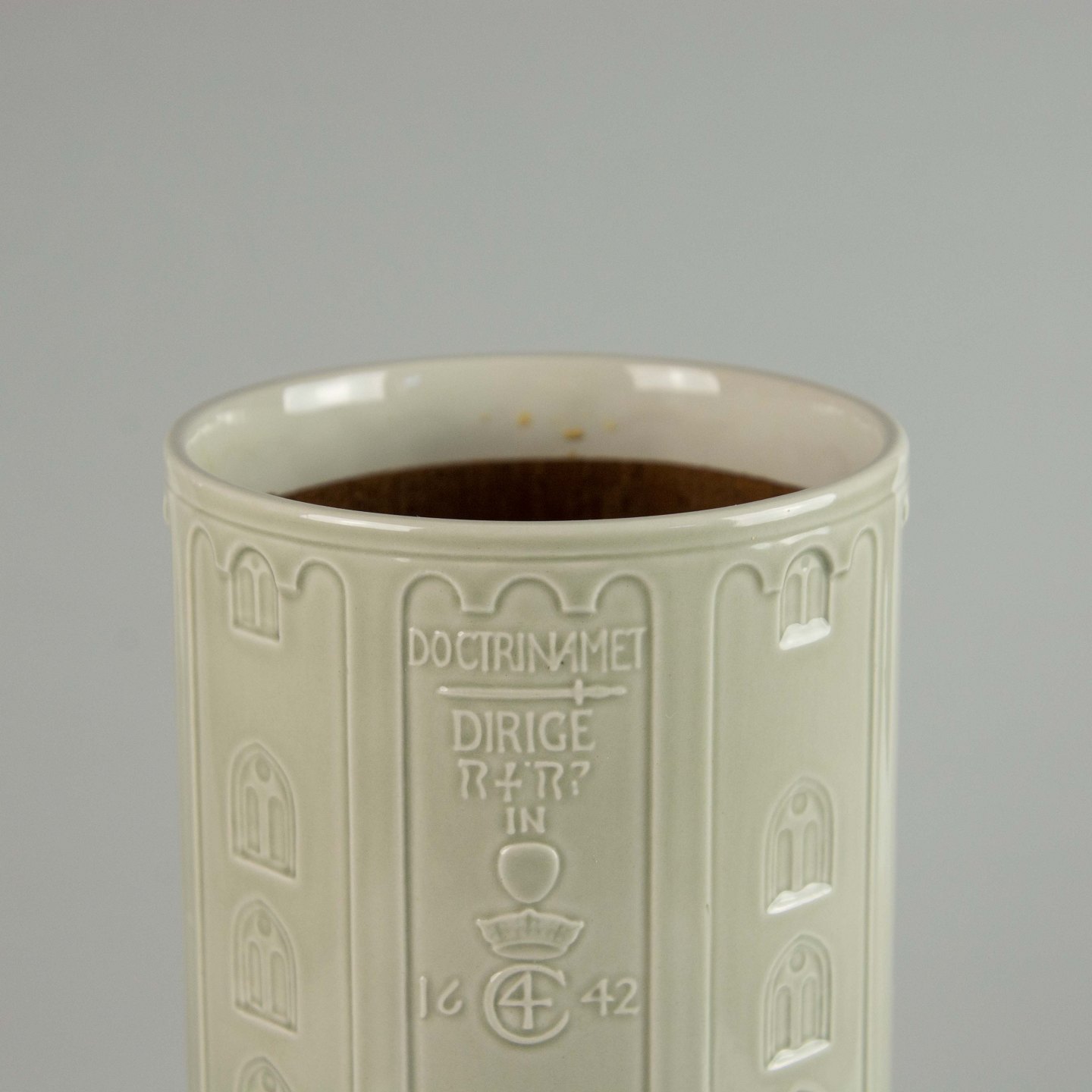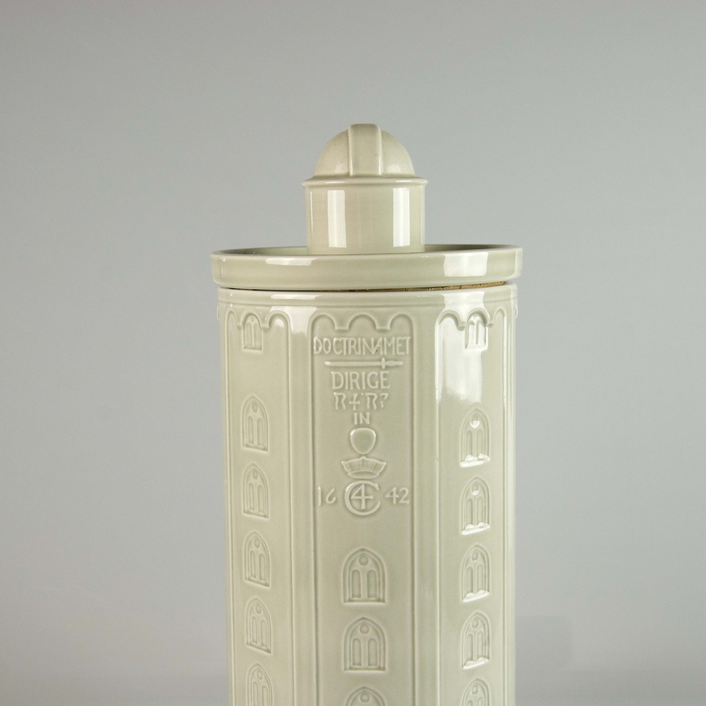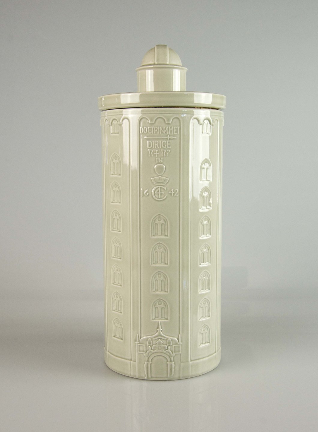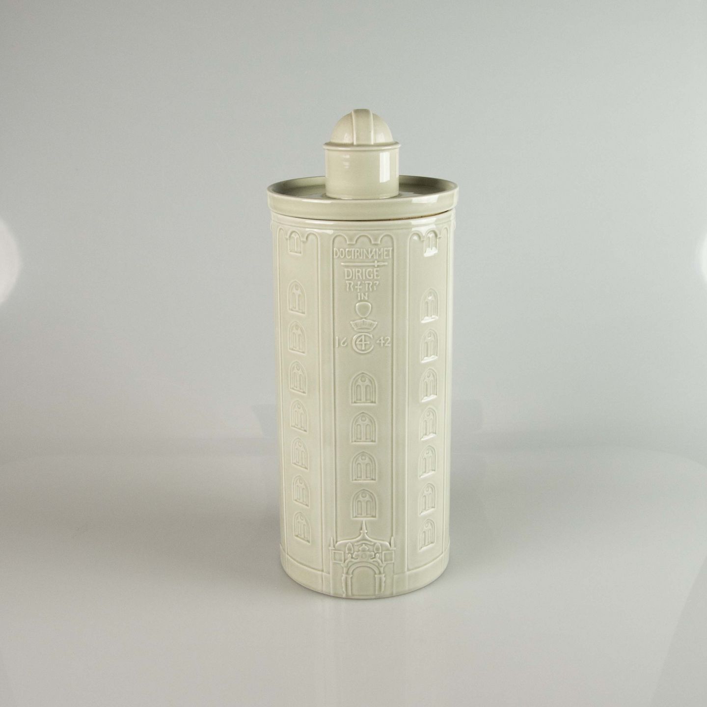 Lågkrukke i fajance i motiv af rundetårn