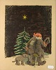 Tryk med motiv af vagabondens juleaften