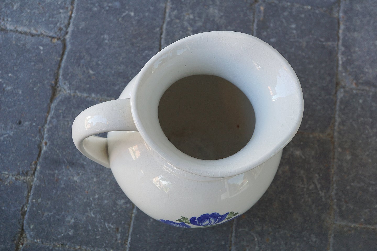 Servante kande i fajance stellet Ricard med blå tulipaner.