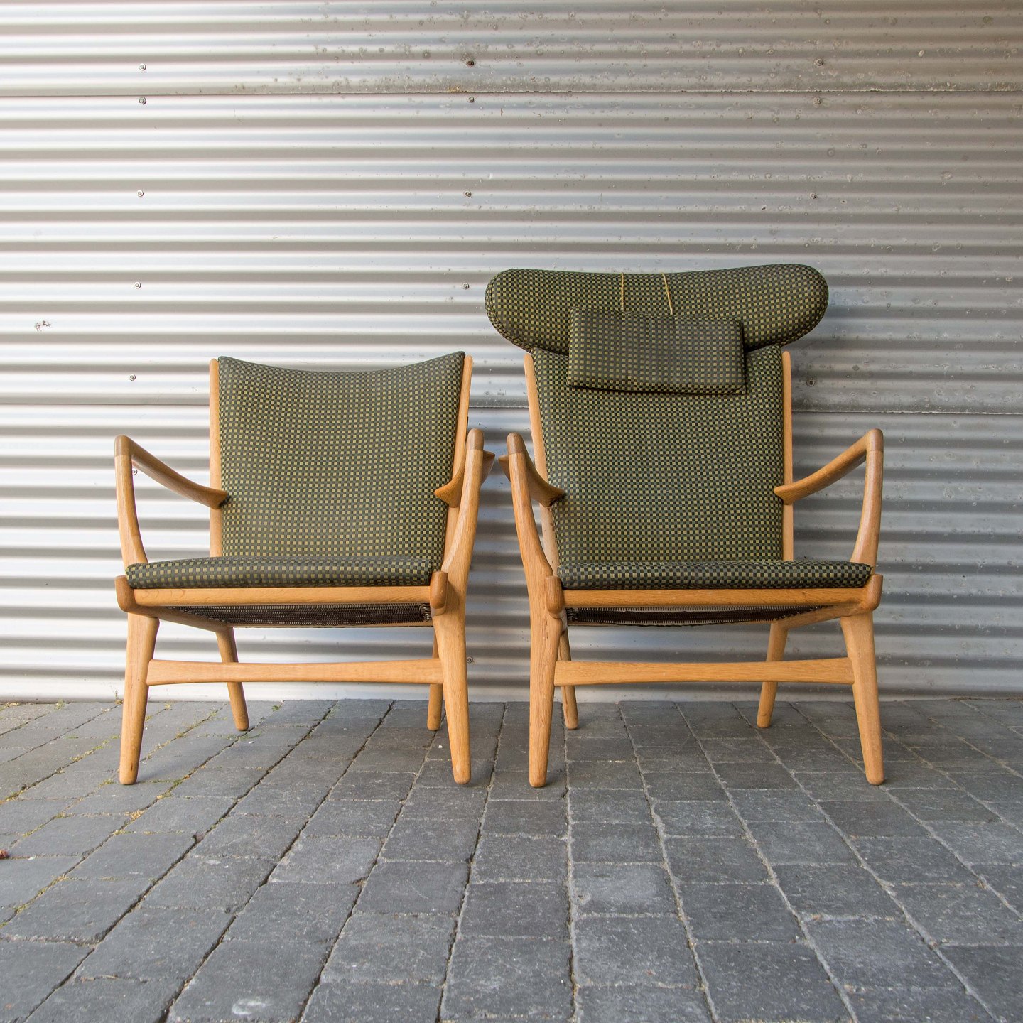 Et sæt lænestole i egetræ med stofbetrukne sæder model AP15 og AP16