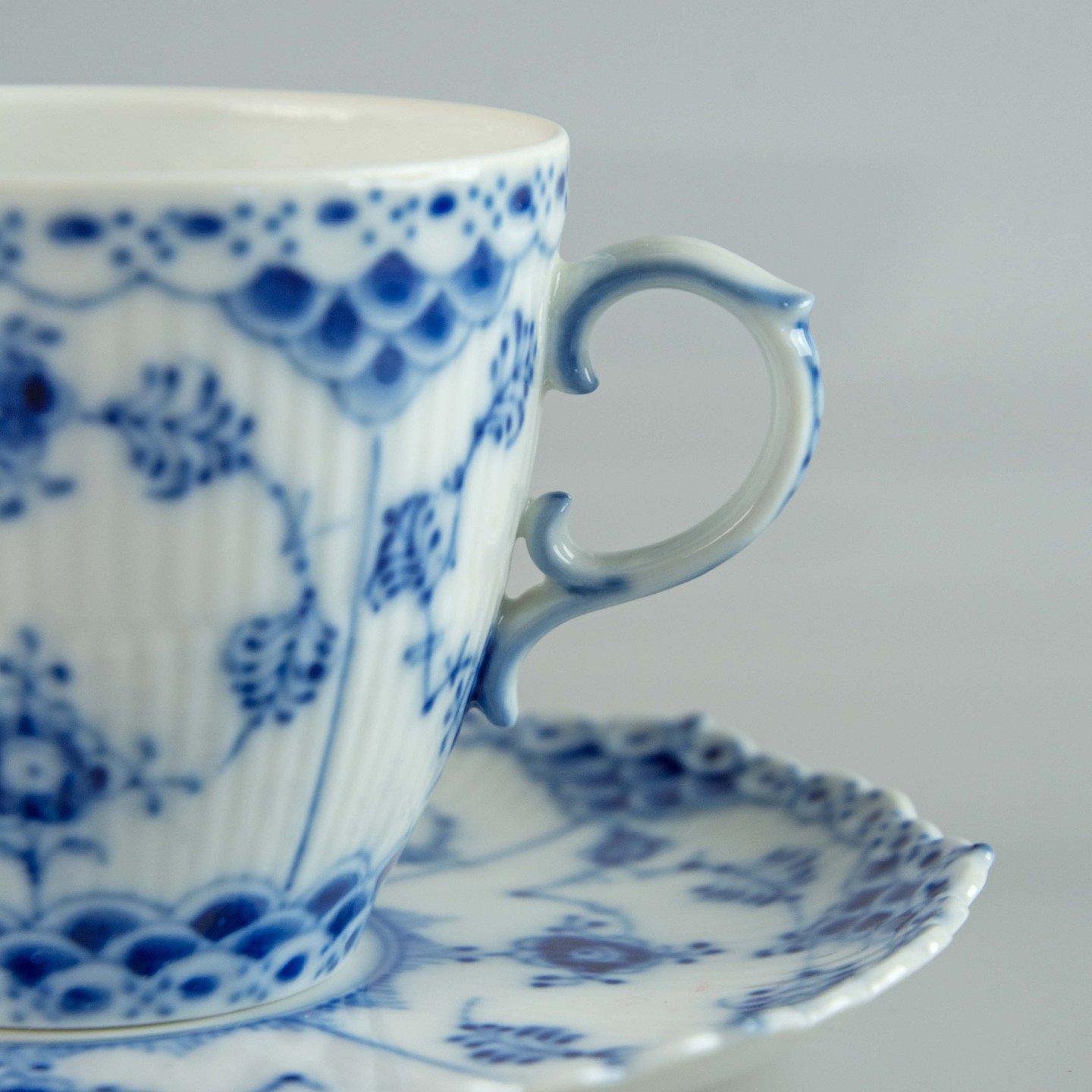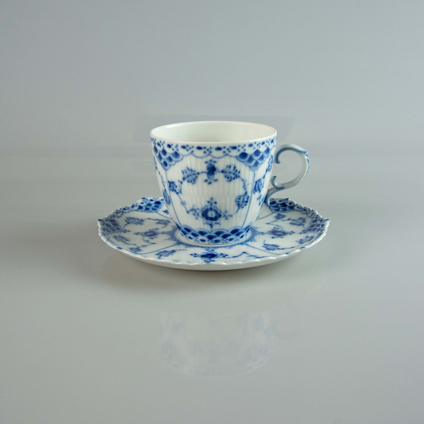 Kaffekop med underkop i porcelæn i serien musselmalet halvblonde nr. 1/1035