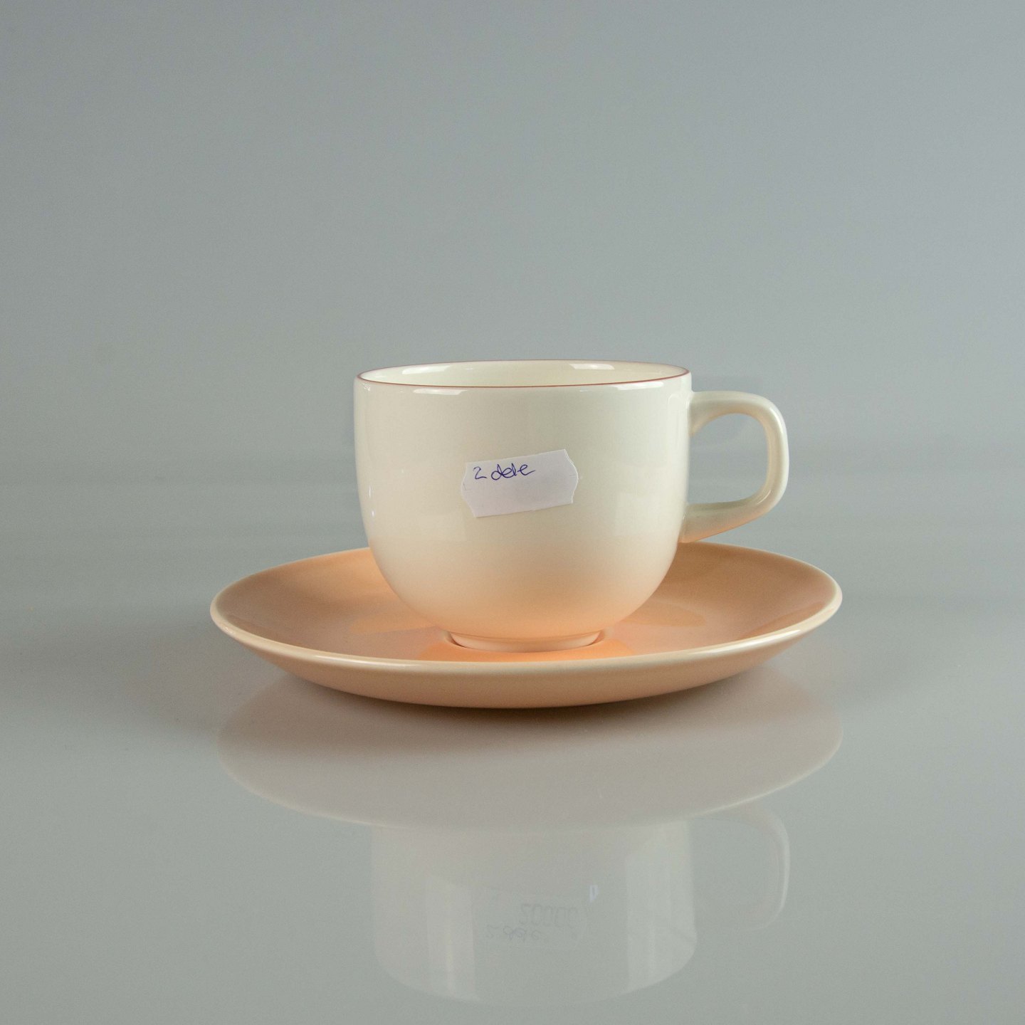 4 All seasons morgenkop med laksefarvet underkop i fajance nr. 072 og 073