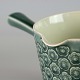 Sovseskål i blågrøn stentøj med blomster motiver.