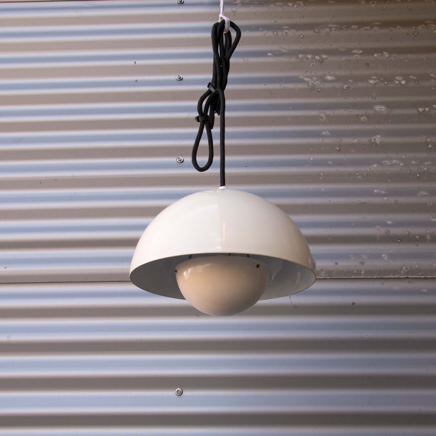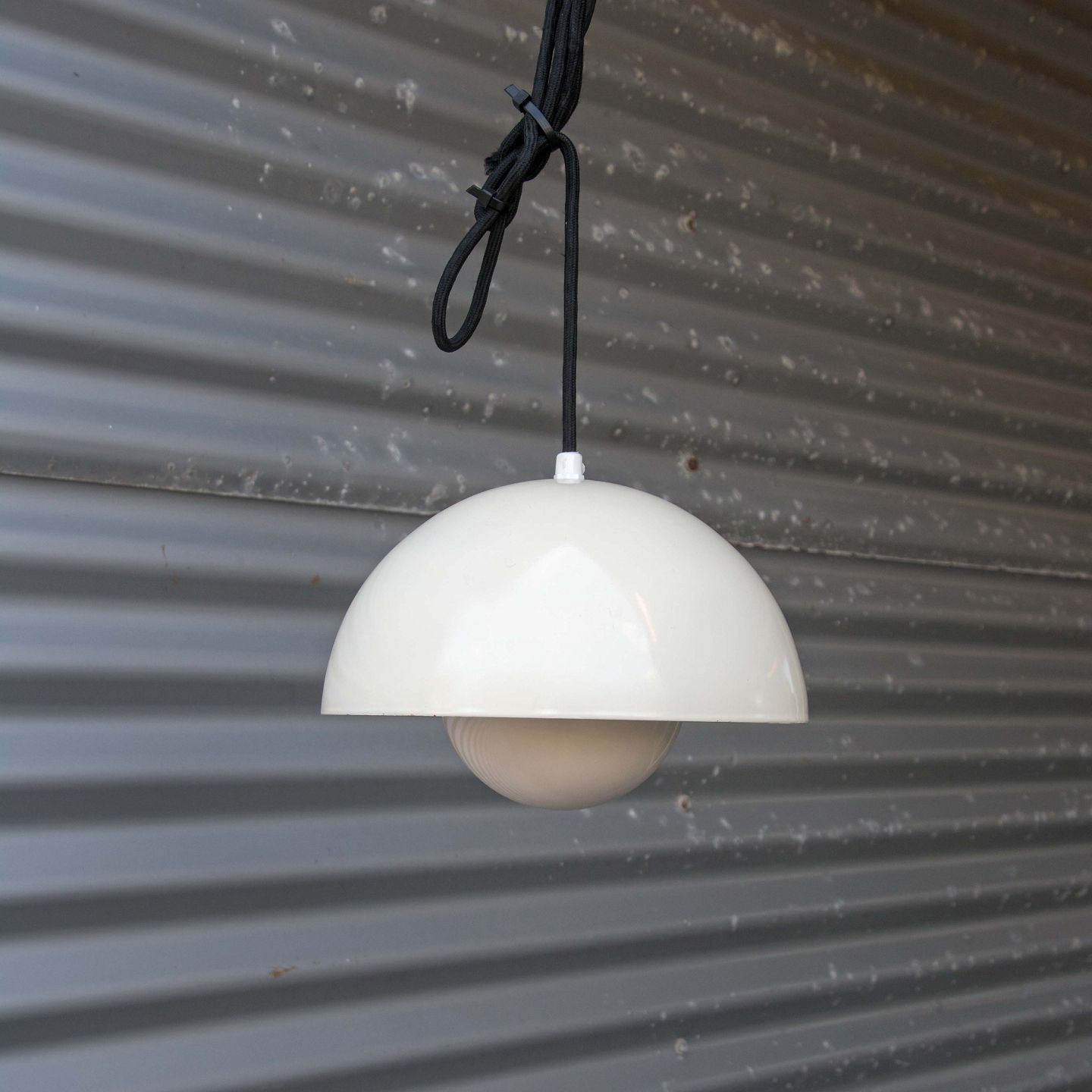 Flowerpot pendel i metal belagt med hvid emalje og fatning i porcelæn