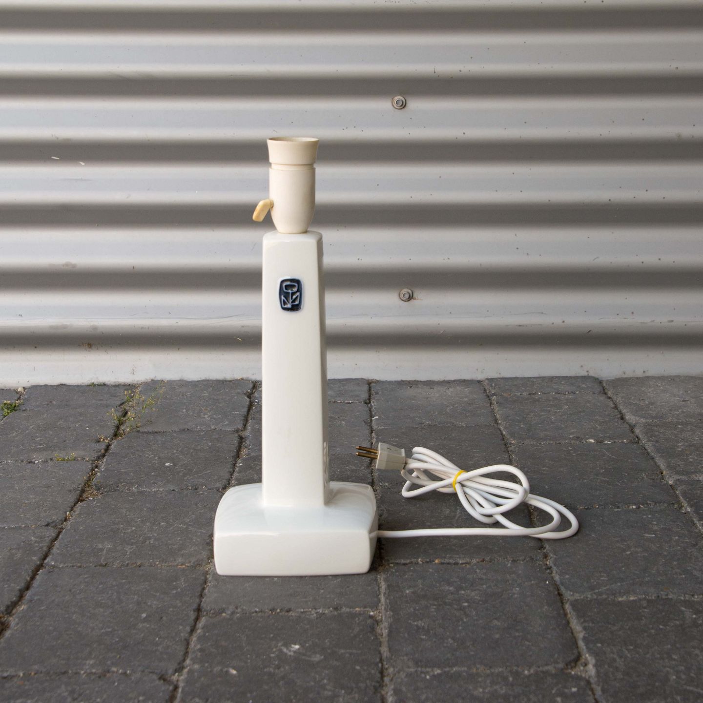 Bordlampe i porcelæn med kantet fod og enkelt udsmykning nr. 4625