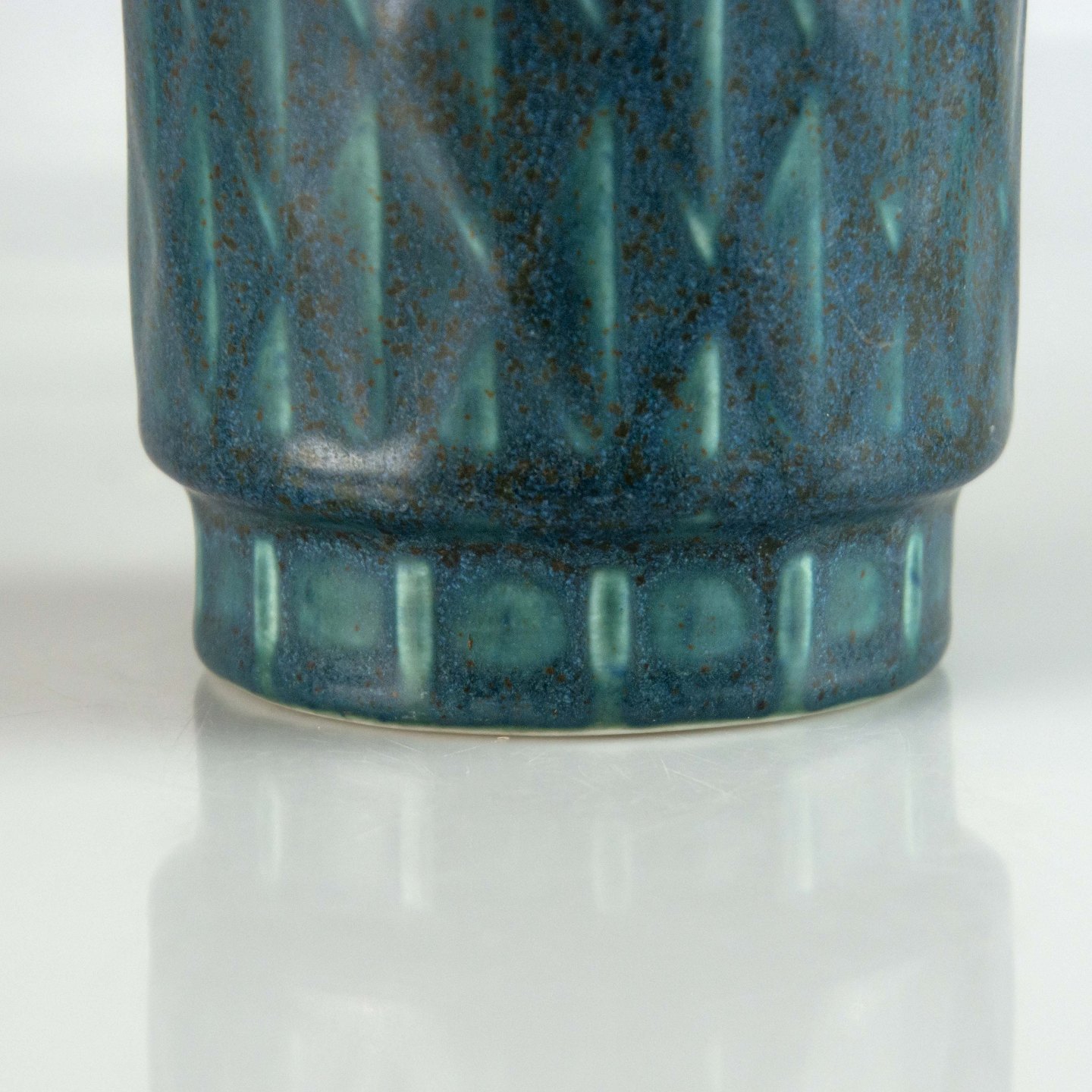 Cylinderformet vase i blågrøn stentøj med abstrakt mønster