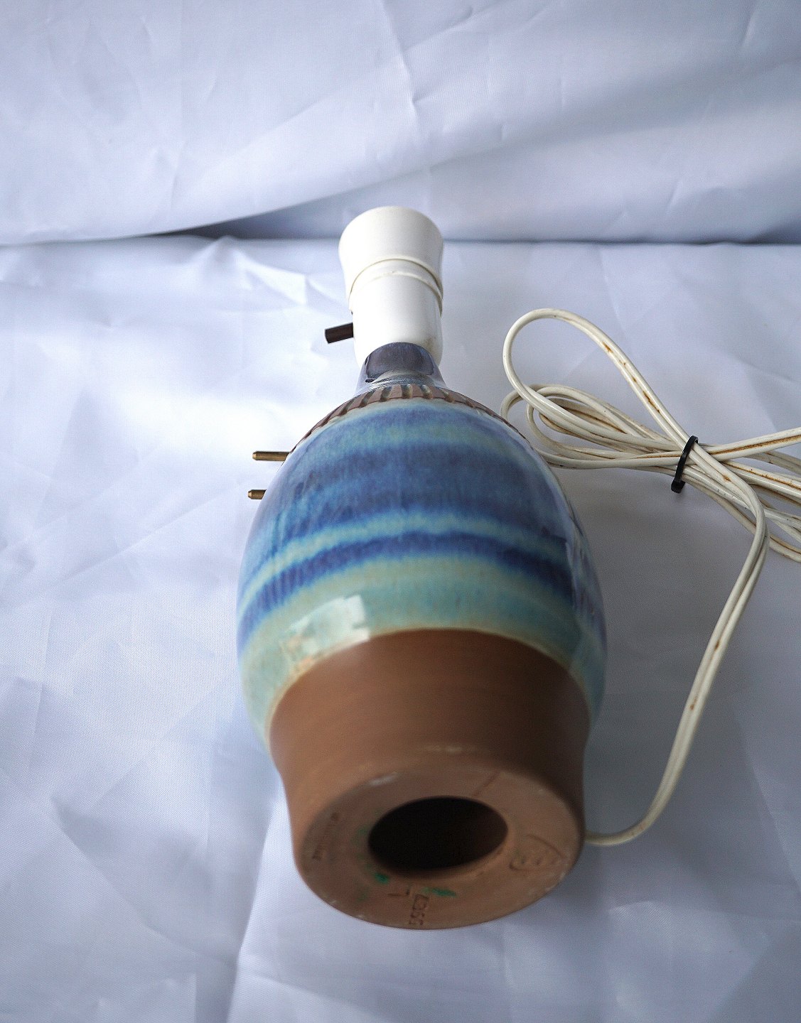 Bordlampe af keramik, nr. 5967, Michael Andersen. Bordlampen er i forskellige blå farver