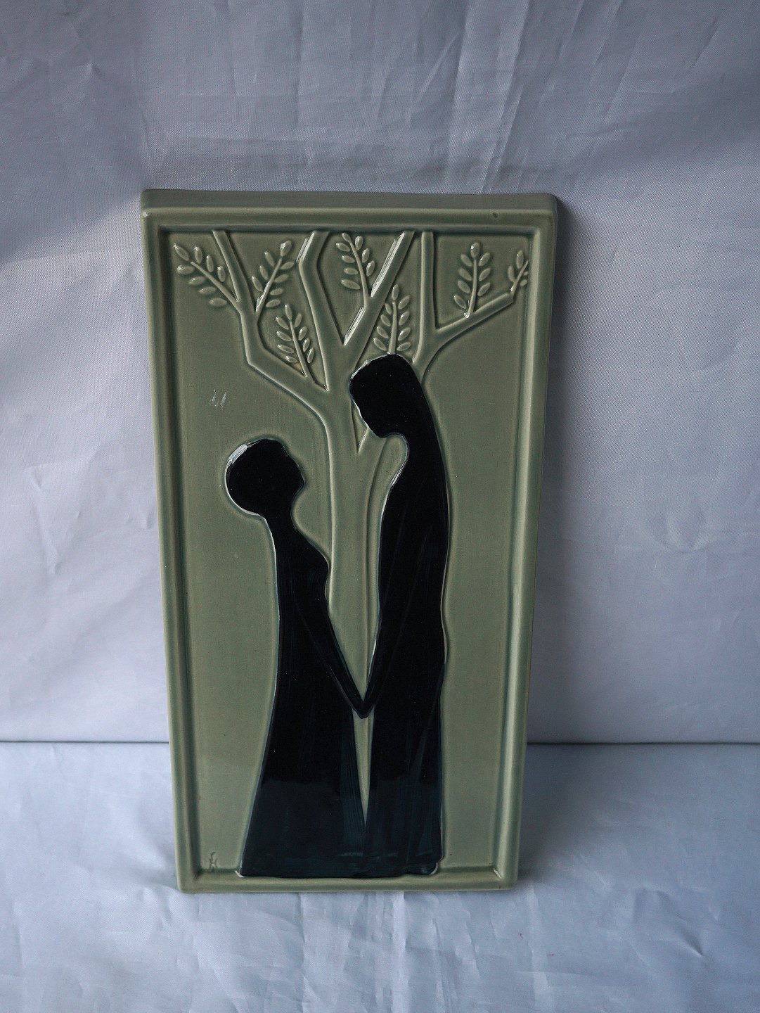 Søholm relief, nr. 464. Initialer LJ. Relieffet er gråt med silhuetter af en kvinde og en mand