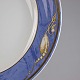 Tallerken med lyseblå marmoret bort dekoreret med gylden blomsterknop.