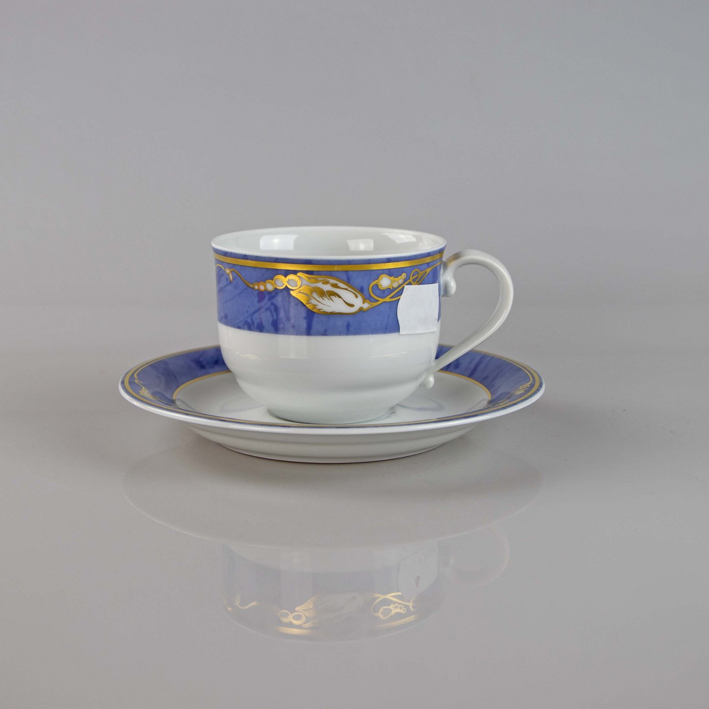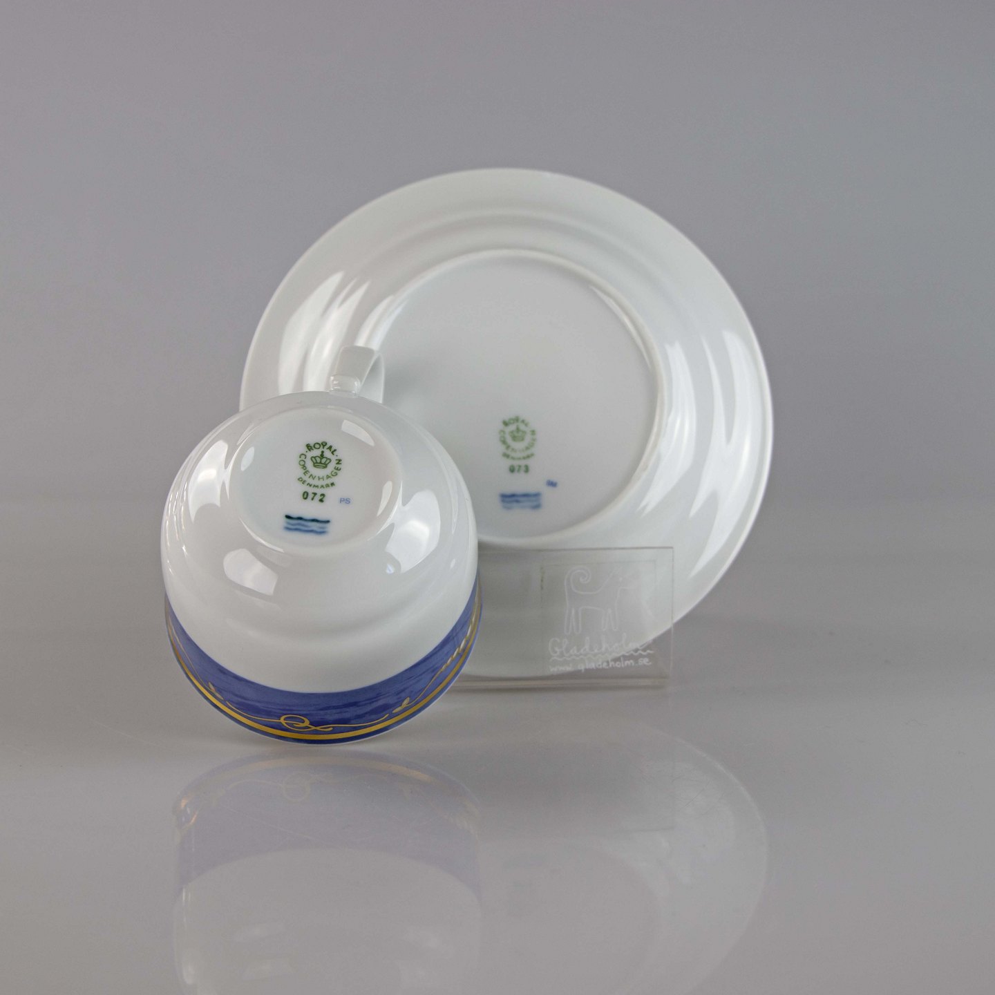 Kaffekop med underkop i porcelæn fra stellet Lyseblå magnolia nr. 072 og 073