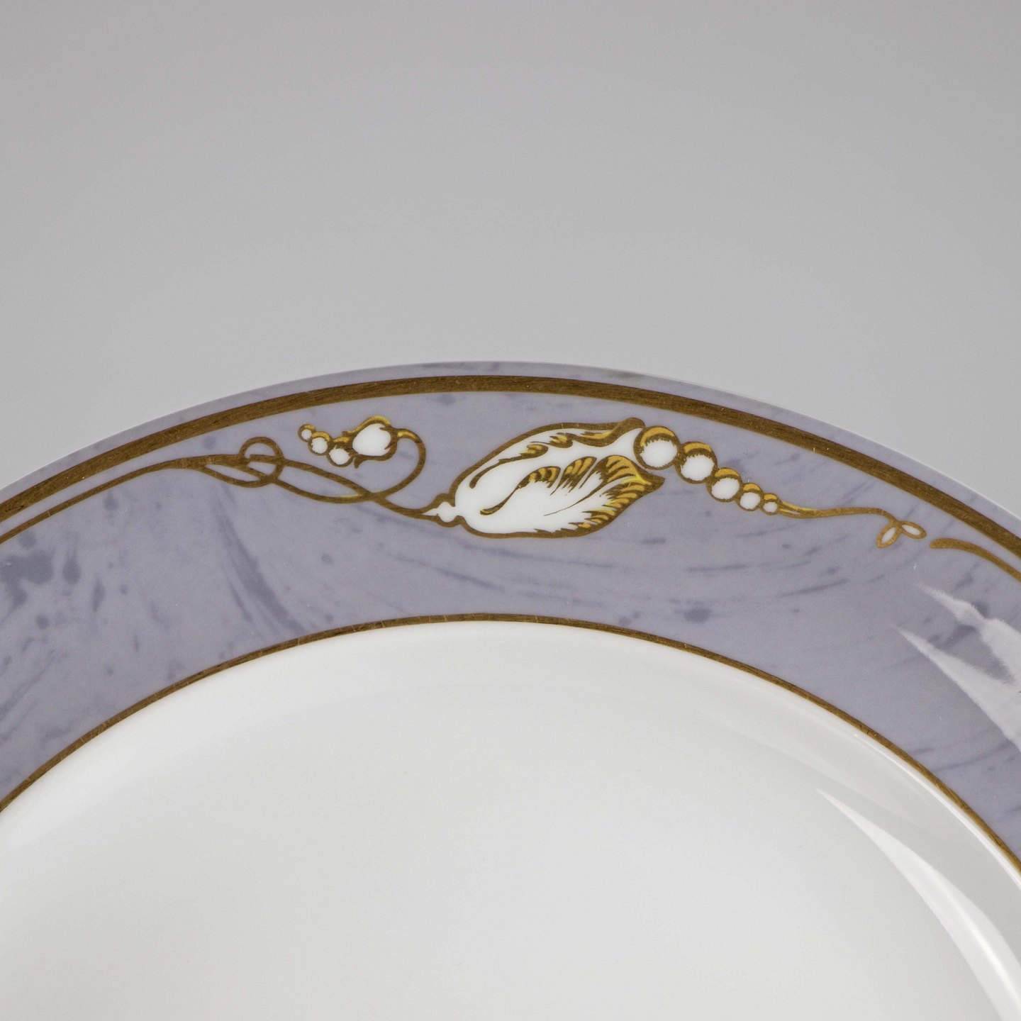 Tallerken med grå marmoret bort dekoreret med gylden blomsterknop.