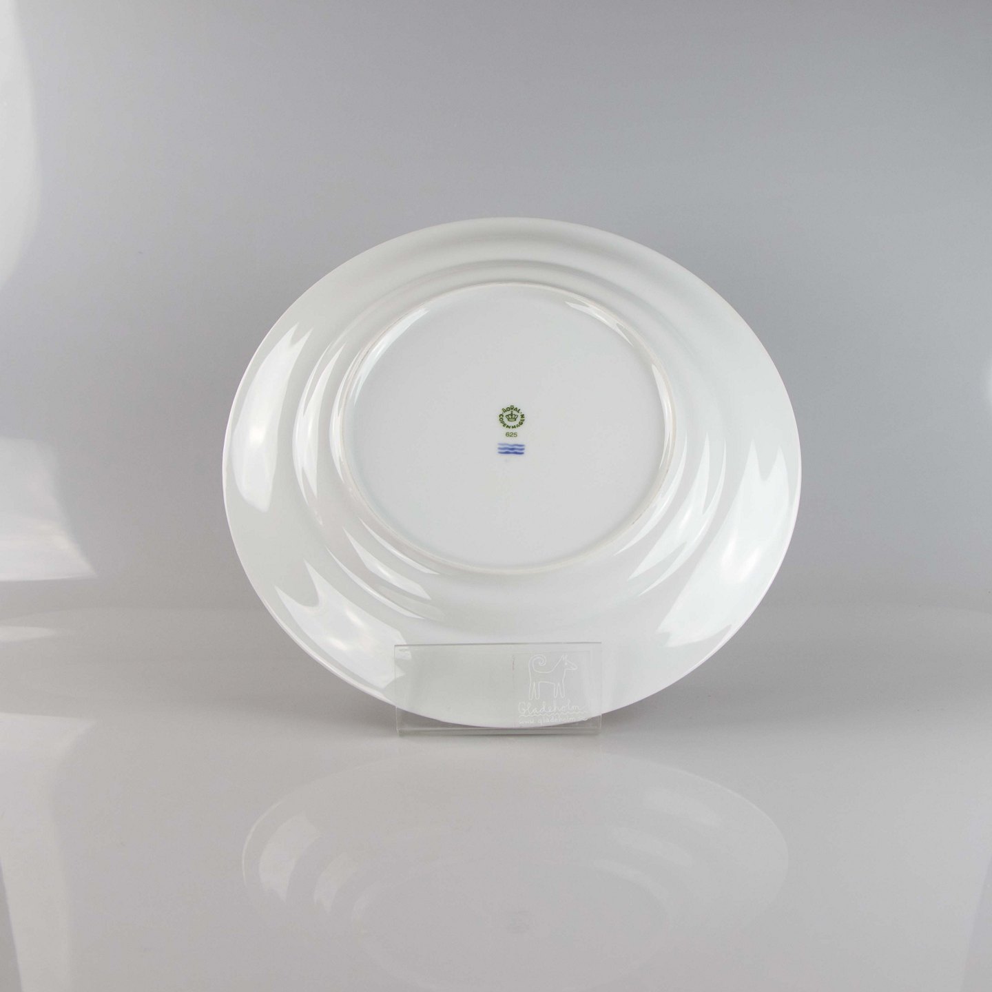 Flad middagstallerken i porcelæn i stellet Grå magnolia nr. 625