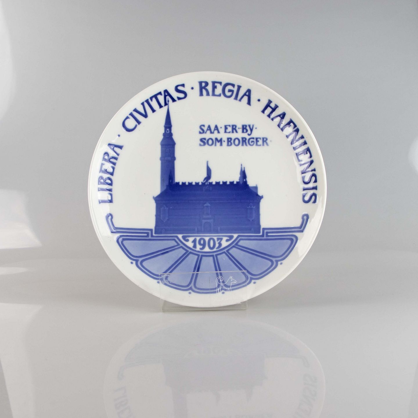 Mindeplatte i porcelæn med motiv af Rådhuset i København 1903 nr. 151